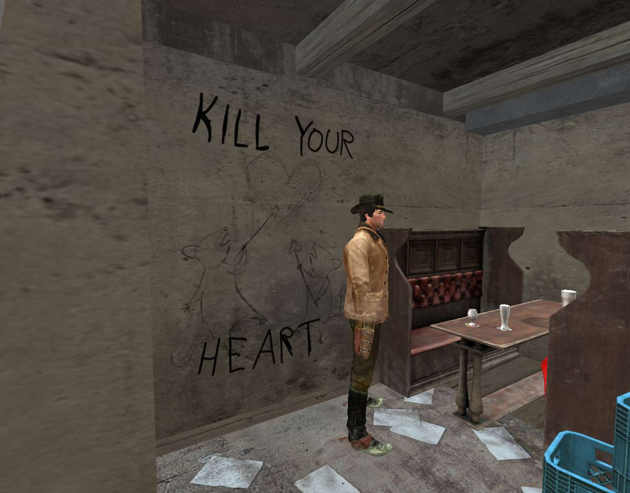 “Yes, after you were buried. I killed *you*. Shot you right clean through the heart.” A smirk appeared on her face. She was way beyond him now, she felt. Try to top *that* she seemed to present in her haughtiness. “But then I dug you up, brought you back to life. You presented me with a ring and I accepted the call then I accepted the proposal. Buried *then* married,” she reinforced.