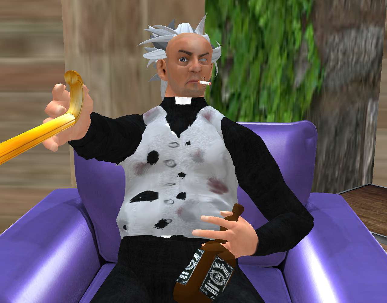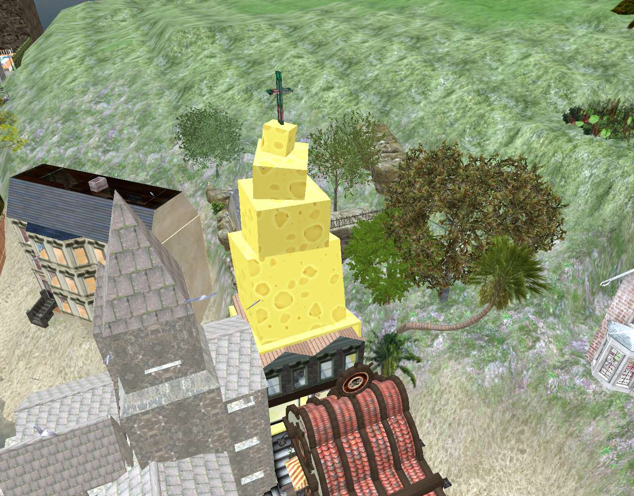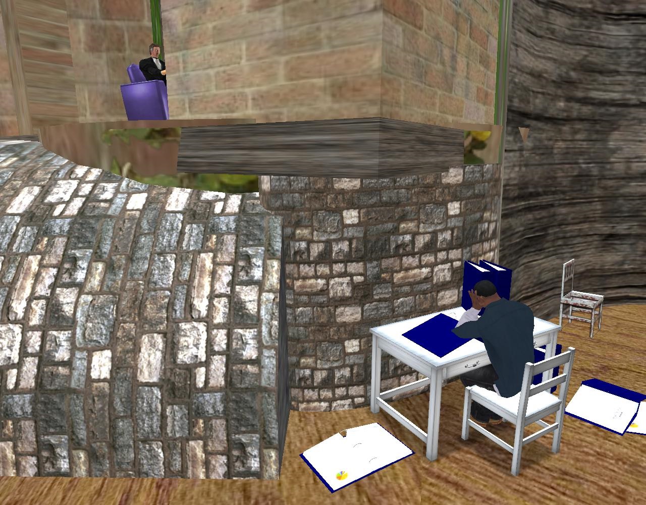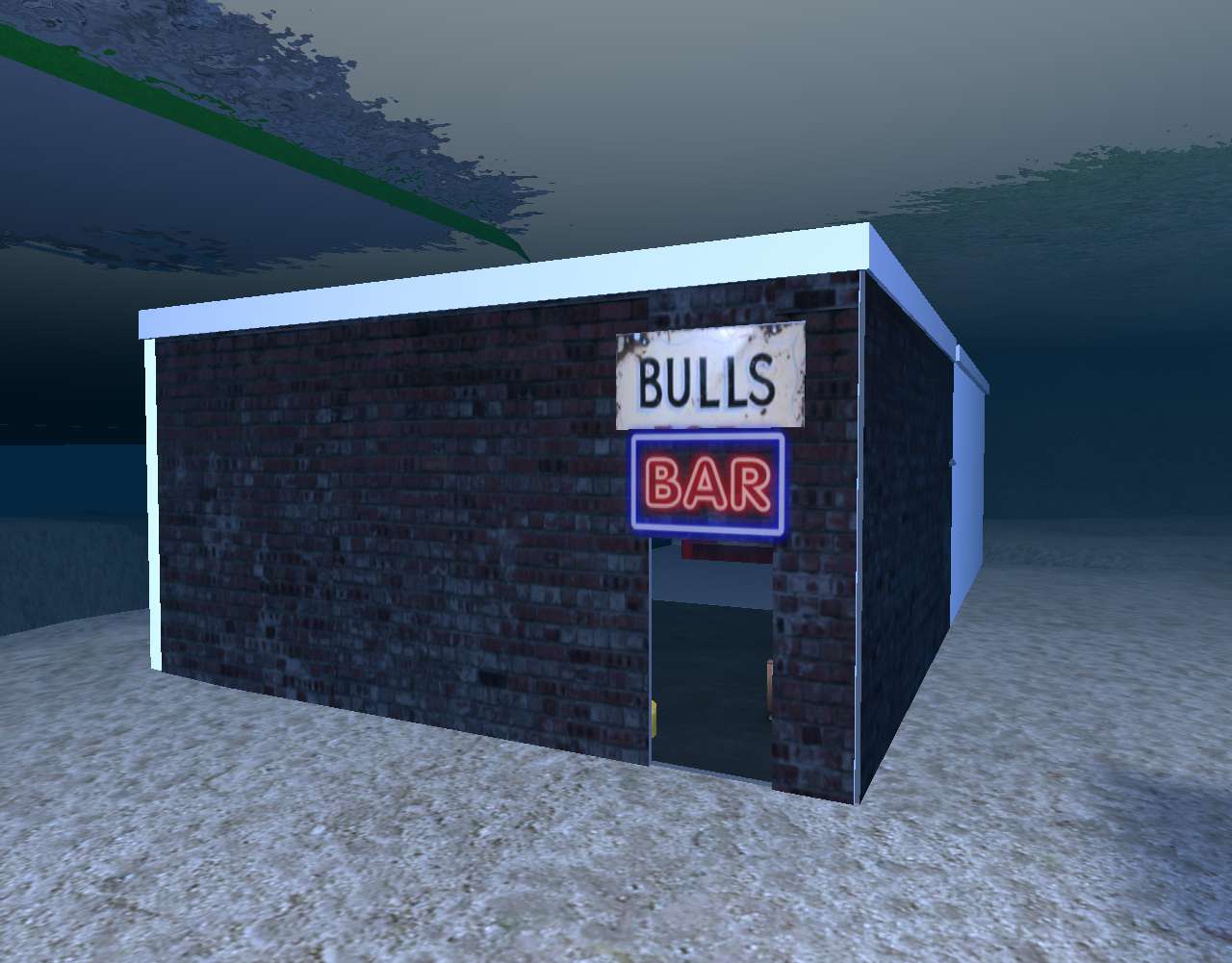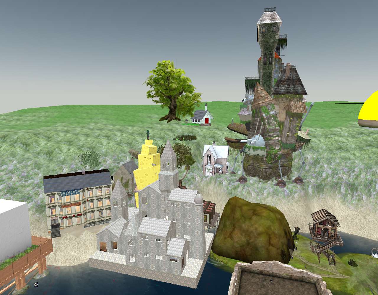 The layout of my Nawt Vaya Free State land on the continent of Jeogeot in the virtual world of Our Second Lyfe has changed. Frank’s Giant Castle in the Skies has now been moved down and grounded (in reality?). Cement Village, last seen in Aisle of Palms over a year back, has become the new business center, housing Daisy Flathead’s Hole in the Wall and more. Let’s go inside and see how she feels about it.