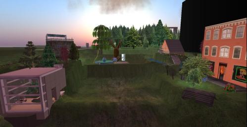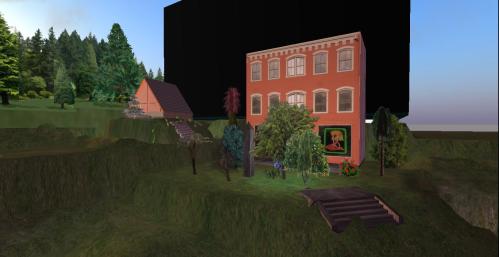 The Rose Cottage, another Fatima Ur creation like House Greenup and House of Truth but smaller and cosier in design, has been erected on the only land I actually owned in Pietmond at the time this picture was taken. This may be the site of Baker Bloch’s new, official office, but I’m still uncertain of that, and another candidate has especially surfaced in the meantime just across the sink from here. All is still in development.
