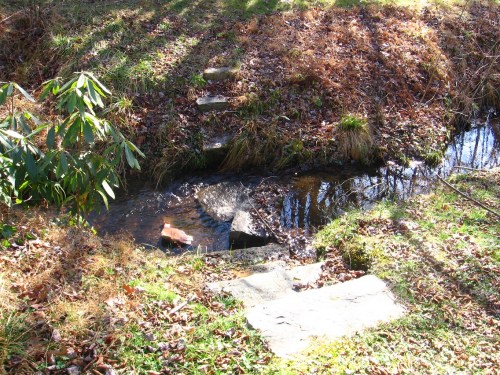 Within the same tiny park: some rock stairs on either side of a creek running laterally through it, as yet unnamed by me.