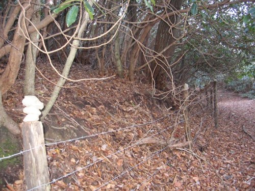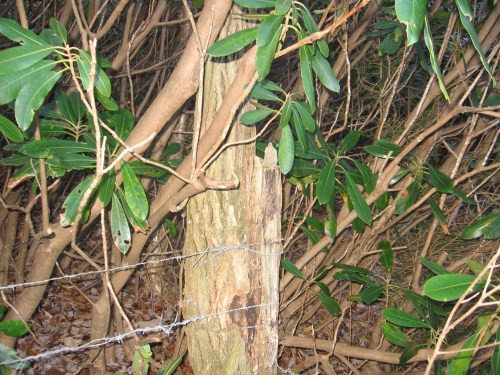 I also couldn’t help but notice that the 5 lines made by the fence wires going across the posts echo the look of the Bee’s Line weaving I attempted at the Weaving Place just above this, especially before I lowered the involved string to the ground.