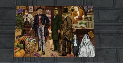 And we leave this wing with “Victorian Seaside Holiday drawbacks No. 237” to the left and “Mr. Archimboldo” to the right, with another NYC background for the latter.