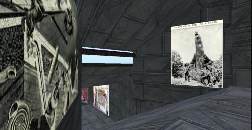 Then across from it we have another b&w collage exhibited beside the resting Baker Bloch here, named “What Lies Beneath”. Reminds me a bit of “Who Left That Tap Running?” from the upwards part of this wing.