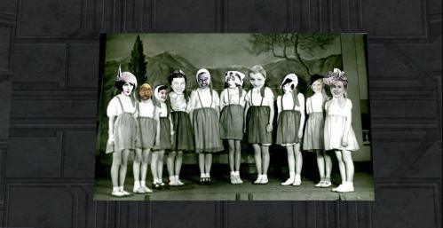 “Found Heads” — there are a number of these type of collages in Michael’s work depicting a row of women and/or men whose appearance have been uniformly altered.