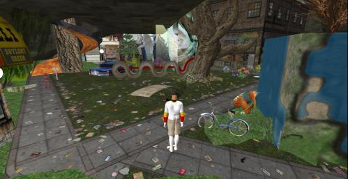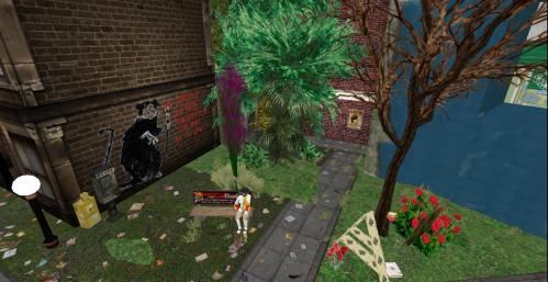 Two more new structures to the south of the SoSo Gallery. The one to the right could be yet another small gallery possibility. The far structure with round window probably represents a residence. Who lives there? (so forth so on)