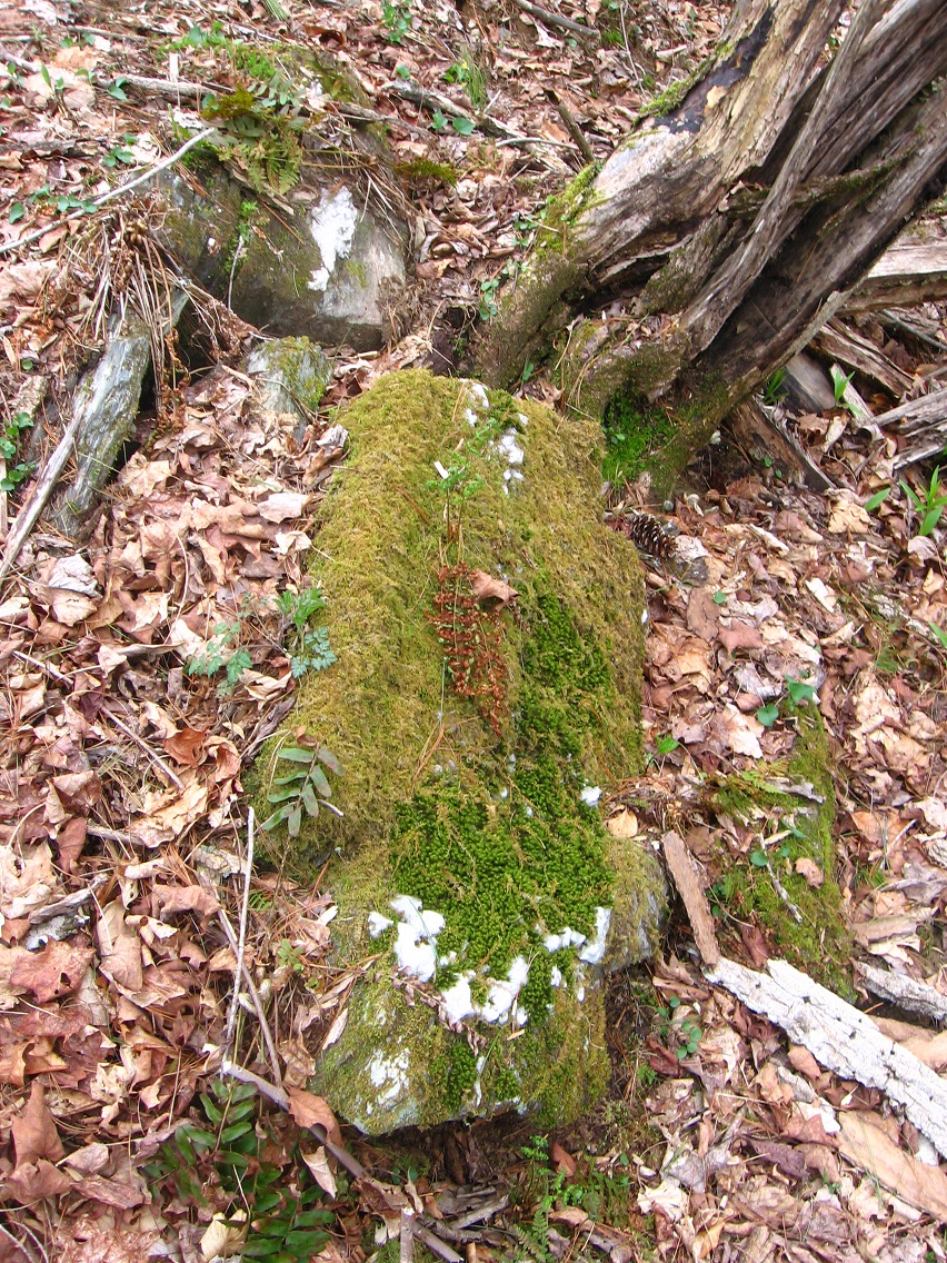 … possible name source for Whitehead X-ing is this moss covered rock with white quartz, perched above Little Whitehead, and downstream from a similarly perched Edward Stone and its Green Turtle, Hucka D.