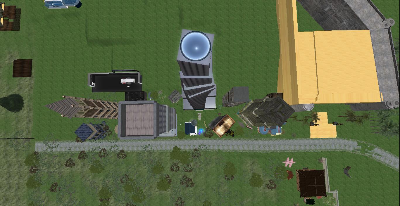 Preliminary tour of VWX Town. I have my now central Power Tower Gowlery complete with all the Gilatona-Lis collages set up near the back middle of the village, and also the supplemental galleries surround it now, just like they did in PTG Town currently being emptied. There include the still unnamed gallery containing the Wheeler-Jasper series (another skyscraper), and the Sink Lair Gallery. However, the Quadtower of TILE has *not* been moved from PTG Town to VWX Town, since a version of the Baker Bloch in England exhibit already exits *directly across the Rubi Forest* from VWX Town in the *Tower of TILE*. That was another attraction in buying the Tyta land.
