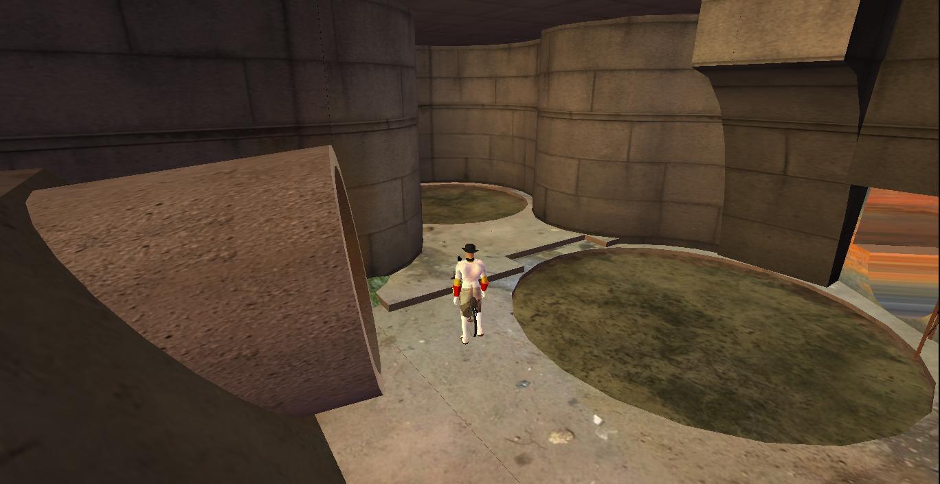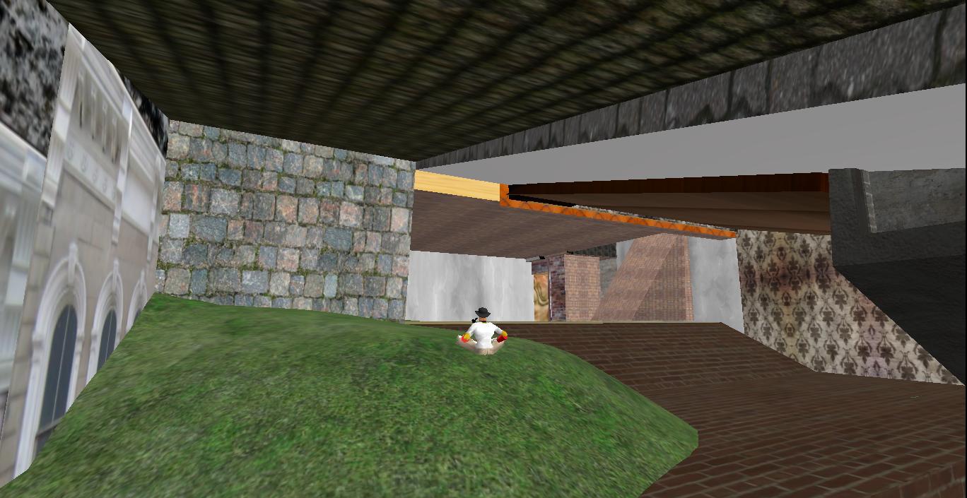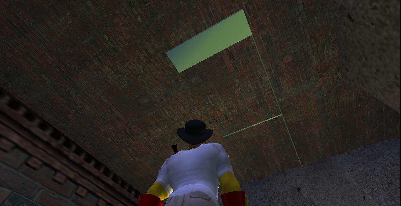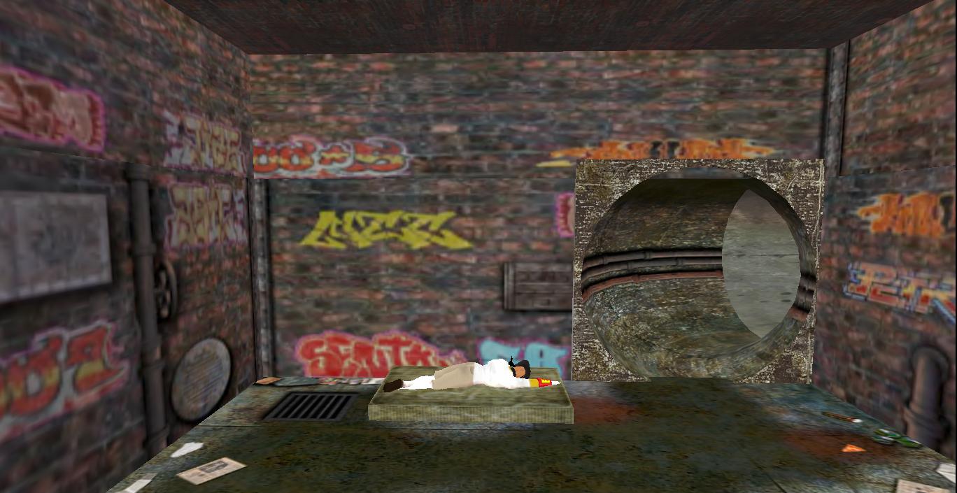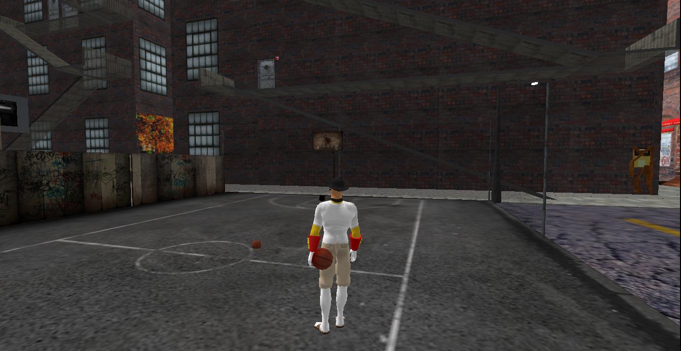 Baker is able to grasp (i.e., “wear”) a basketball but still has no way to play. This is in extreme northern Bembecia, above the galleries and in a grittier part of town.