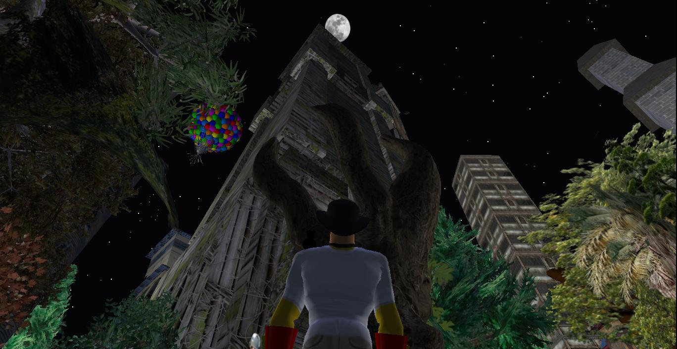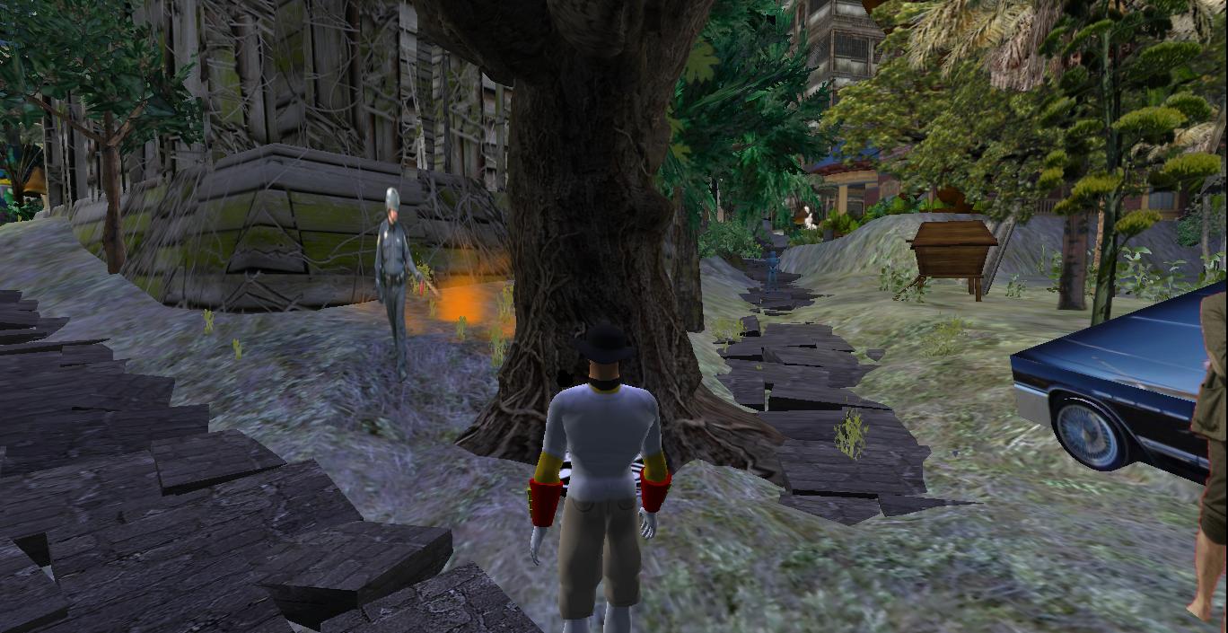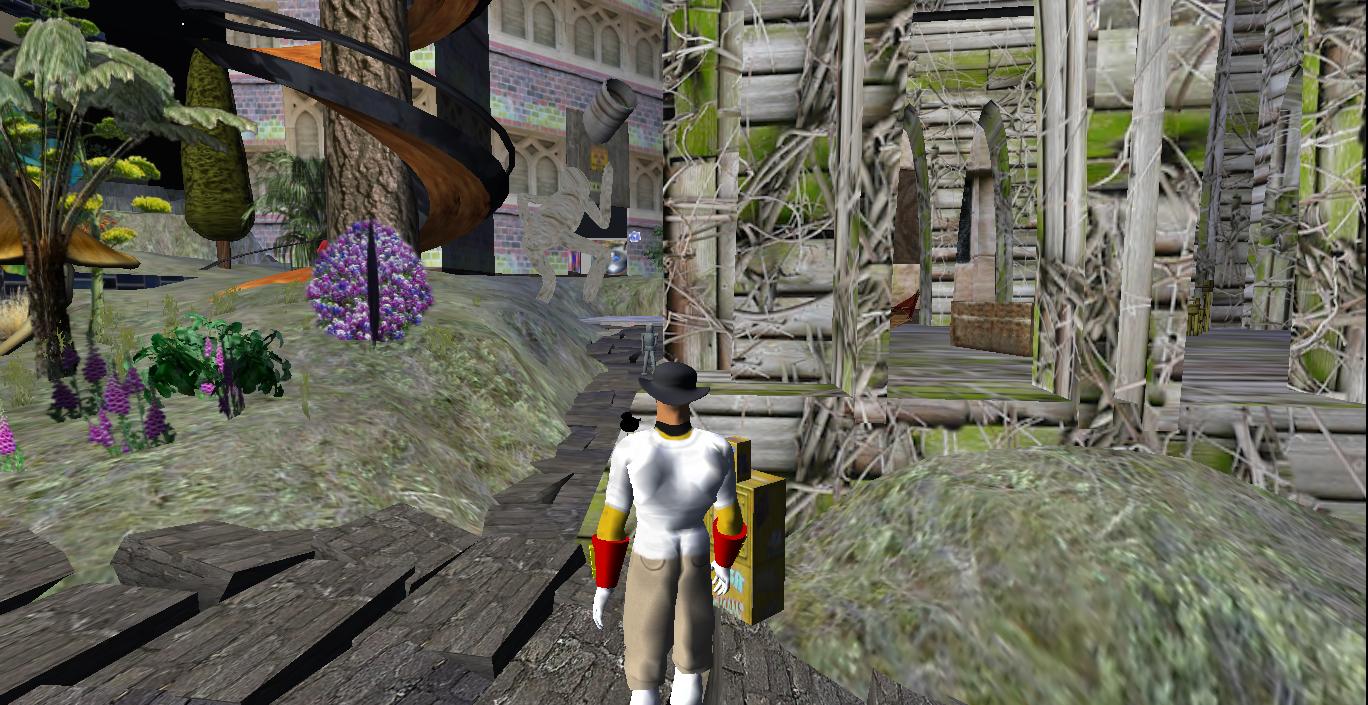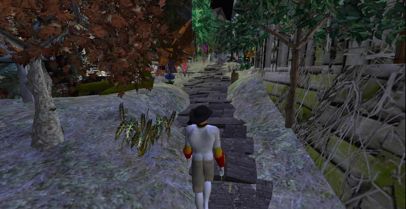Top of the right arm of Central’s “V” shaped path, looking into Southside now. The Victorian house in the background is yet another structure that’s already been deleted from the village, having been replaced by the Temple of TILE just this morning.