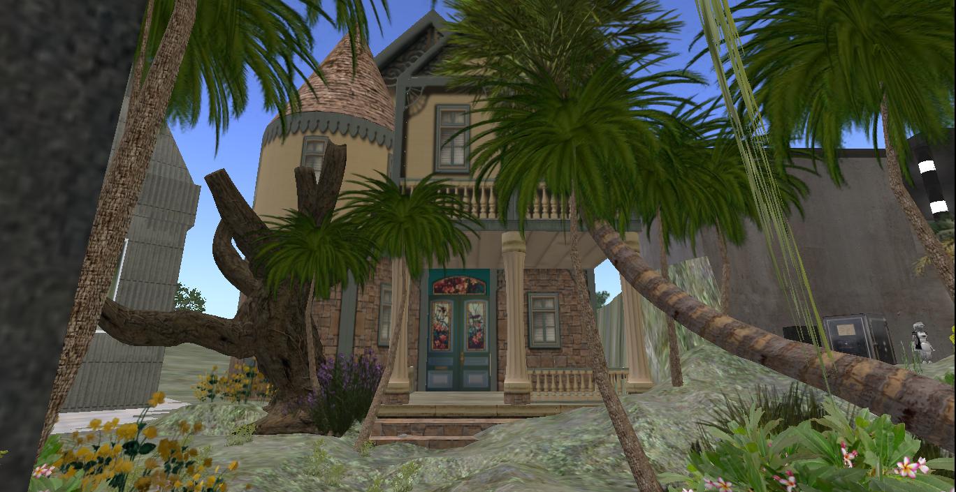 Back in VWX Town, more changes a going on. I decided that the Table House near the center of the town could go, since its original purpose has instead been fulfilled by The Table on the second level of the Church of The Diagonal in Westside. The deletion of this fairly significant, almost 100 prim structure created a domino effect, with the results pictured below. First the deletion of the Table House allowed me to rez both the SoSo East Gallery and Bodega Supermarket in its spot. Both of these structures were last seen on my holdings in New Pietmond, Sikkima, if memory serves.