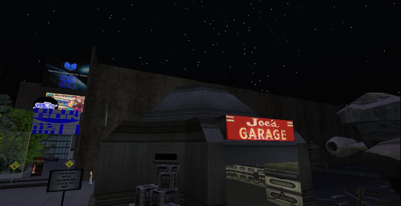 Just north, over the Burnet line, is the Washburne/Washtown/Shadowrim spaceport Baker also re-visited this night, and also on The Diagonal. The master location of Burnet (Burnet/32/32/32) lies within this property as described before, and very near an octagon shaped building labeled Joe’s Garage we’ve speculated might be connected to Frank Zappa’s rock opera of the same name. Just a theory. As Baker is poking more around the property tonight, he finds a Blue Sun Corporation warehouse next door to the spaceport, which includes a secret underground lab.