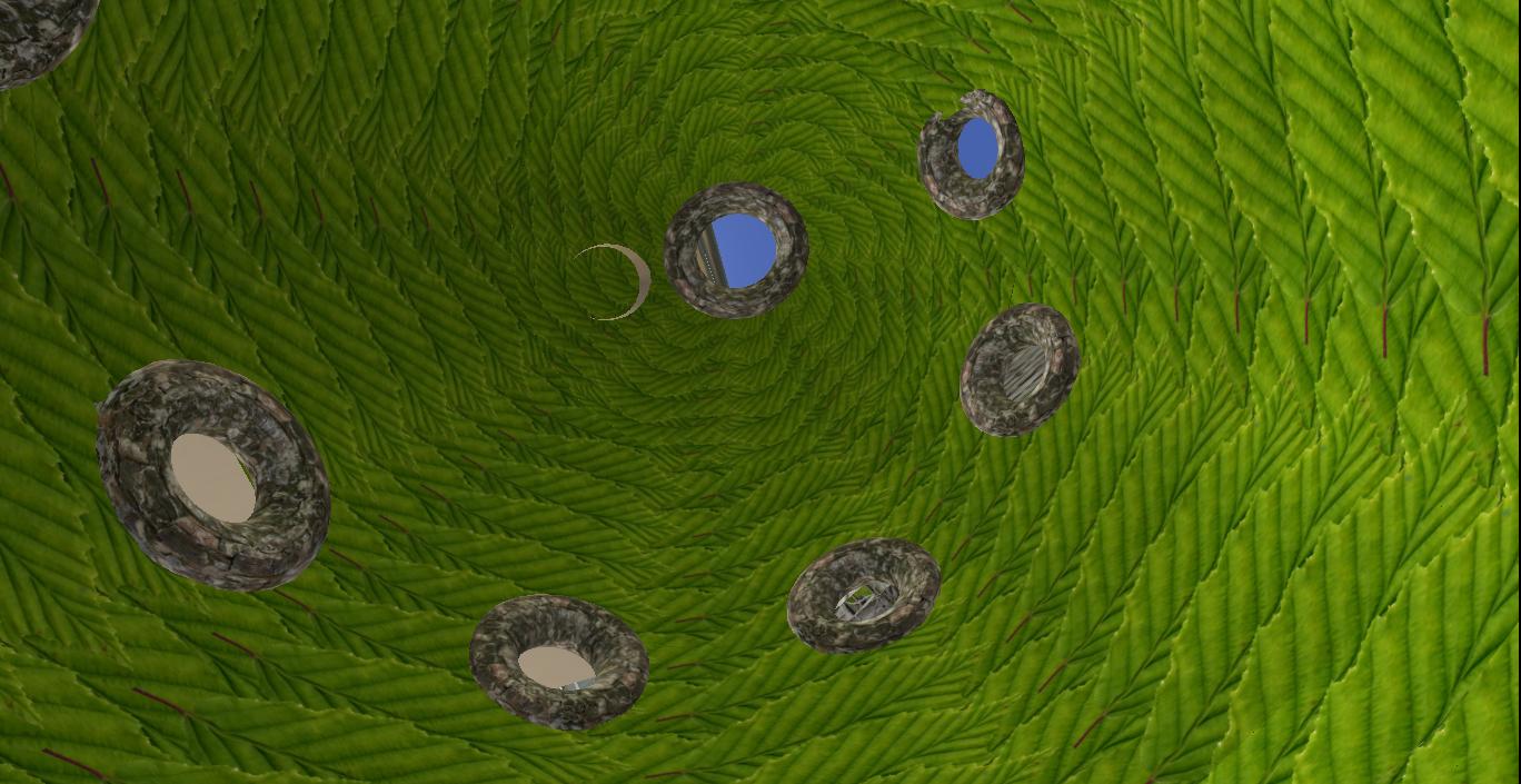View from little yellow-green Piepodt, the same colour as Carrcassonne in the fairly nearby Temple of TILE. Cousins? Closer? Is Piepodt alive?