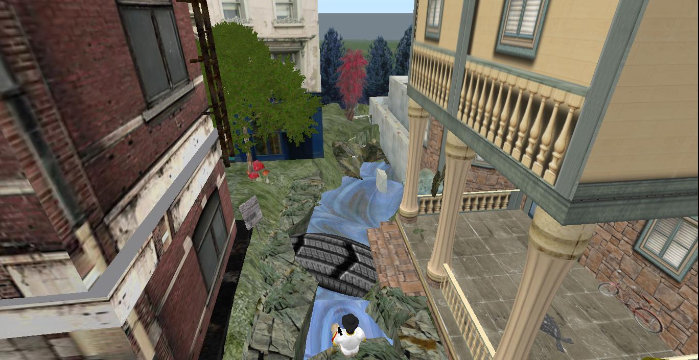 I’m going to continue on a bit without Hucka D. Norris Building on one end of town seems to balance the Temple of TILE on the other. Two religious centers, one fulfilled in a manner (Temple of TILE) and one not presently (Norris Building). Like when Norris [stream] came up to challenge TILE Creek in Fall 2011 for the religious epicenter of Frank and Herman Parks. That’s the one Hucka D. claims to have been married to for a short period of time. That and the discovery of Tinsity just before it started the big shift away from Second Life and toward Frank and Herman Parks of Real Life for me, Hucka. Oh, he’s not here. That was over 2 years ago… so much has happened since then. And my addiction to Second Life keeps repeating rewards, I suppose.