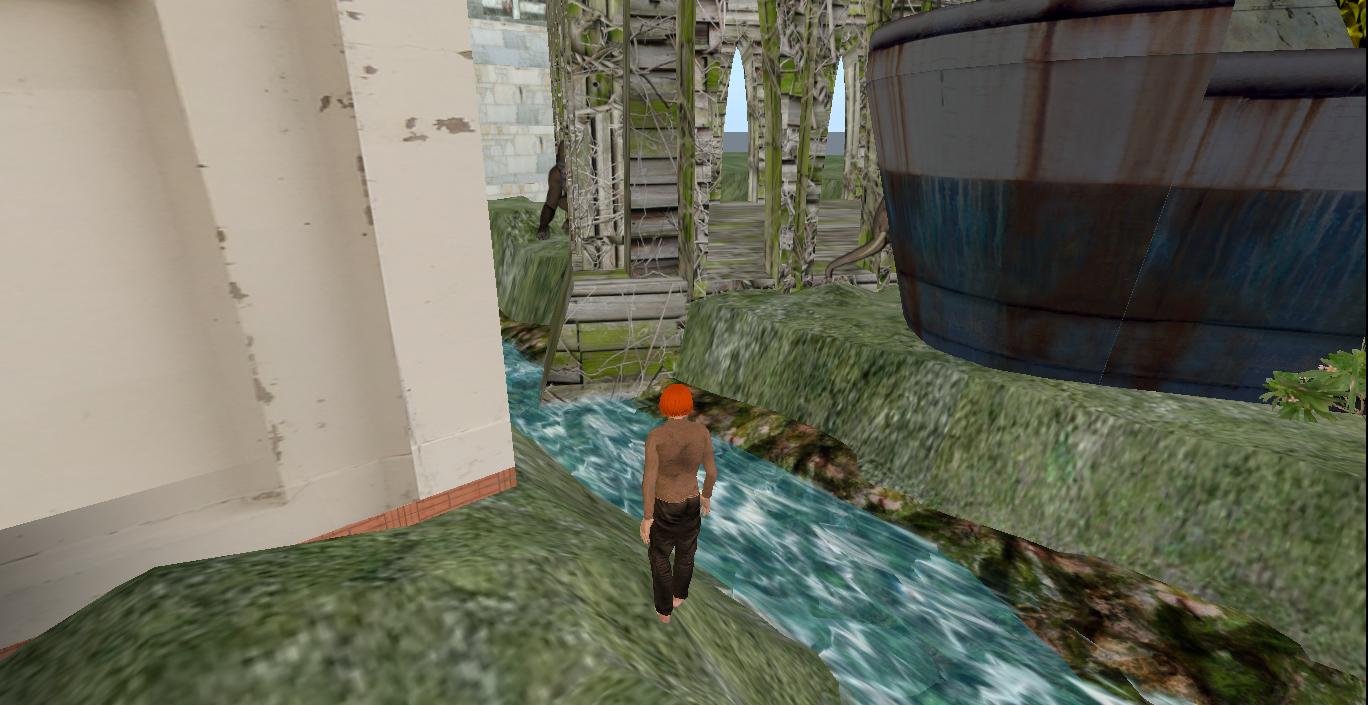 The radio that poked through the floor of his room turned out to actually be positioned on a spool table, surrounded by crates for sitting. The radio still didn’t work, however. Edwardston thought that if he could find friends in this world, they could all sit around and listen to the radio if he could figure out a way to fix it. Maybe the town itself had a radio station, based further to the east where he hadn’t explored yet. An exciting idea.