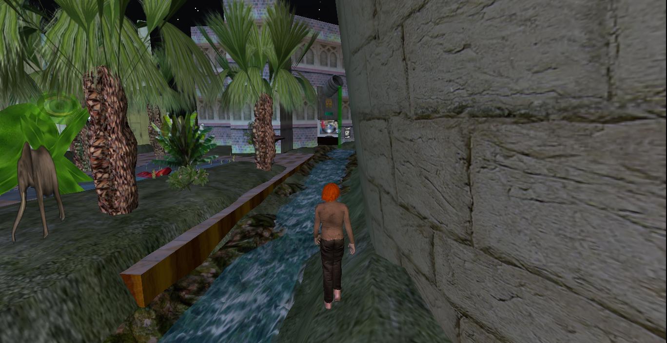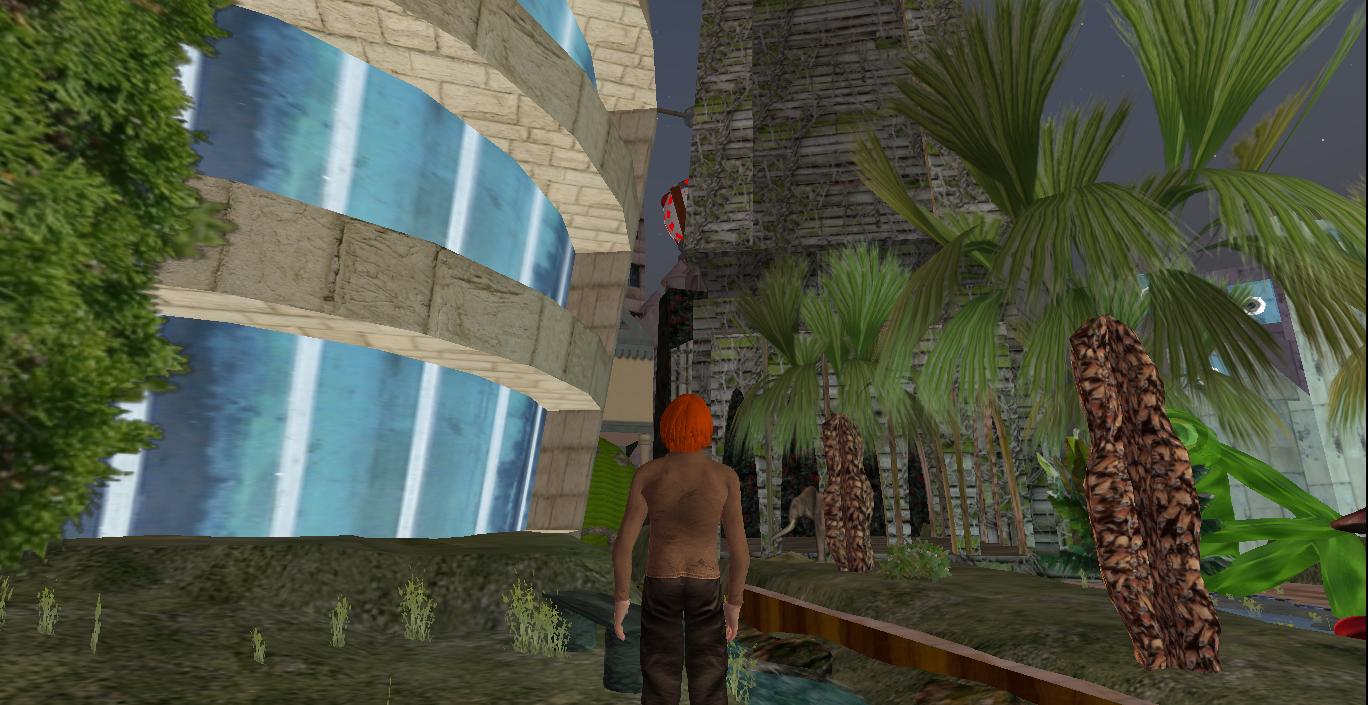 “No,” Edwardston thinks, “it didn’t fly away… unfortunately. What *was* this irrational fear of cats appearing/manifesting in him? First the appearance of that backwards figure between the palm leaves, seeming to enter the Confluence Place, and then the manifestation of the Catman inside the very same palm (trunk this time), facing toward his house instead. Two in one, he realizes. Dwarf and Giant, he then thinks as well, although he’s not sure where that analogy popped in from. Barrel House. He *must* get into the Confluence Place [although he doesn’t call it that].