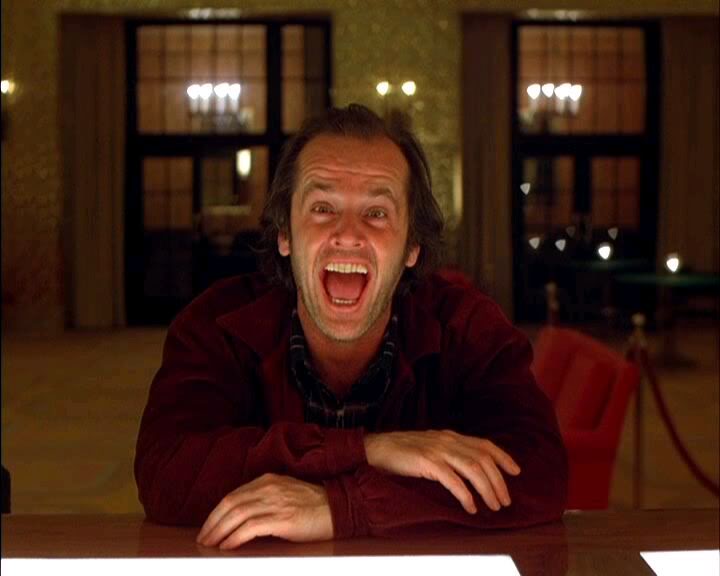 This scene is the last, to my knowledge, in which we hear the “sha” sound. As the conversation in which we hear it has to do with the lines being down–Wendy asking if there’s any chance of repair and the “sha” being heard before the ranger answers–my assumption is going to be that the “sha” sound somehow has to do with this and the lodge’s status of CRM-114, as it were, of estrangement, of being cut off, just as was the jet carrying the bomb cut off from the outside world in Dr. Strangelove, and Alex was separated out for the Ludovico treatment then cut off and shunned. The “sha” sounds may stop as a state of some degree of irreversibility has been reached. The Torrances, previous to now, perhaps had the possibility of leaving the lodge without a catastrophic incident occurring, whereas that is no longer the situation.