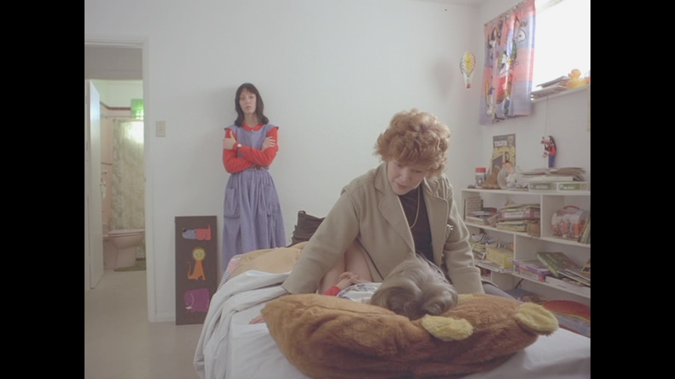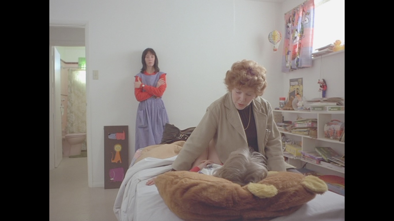 But there’s more (!) In the very next frame past shot 61, the first of 62, we have a mysterious white streak appearing above Danny’s head and the bear pillow, reminding us of the earlier white streak coming above the doctor’s head in shot 61. The white light only appears in this one frame, and doesn’t reappear in any other shot of Danny on the bear pillow in this movie chapter as far as I can tell.