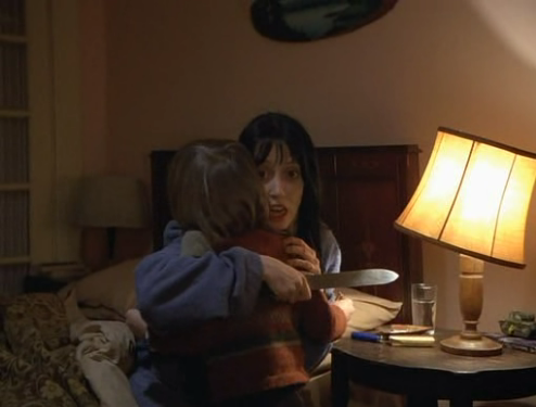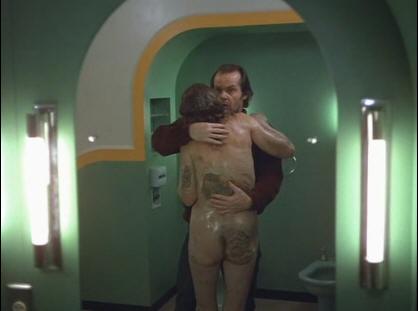 I didn’t realize the resemblance between Danny and the Room 237 hag Jack sees in the mirror. Notice the very similar hair and, perhaps, even body build here. When we subsequently see the hag’s front, we realize she (he?) has no genitalia. This is neither man nor woman but alien, perhaps a dream being. Or *a child*.