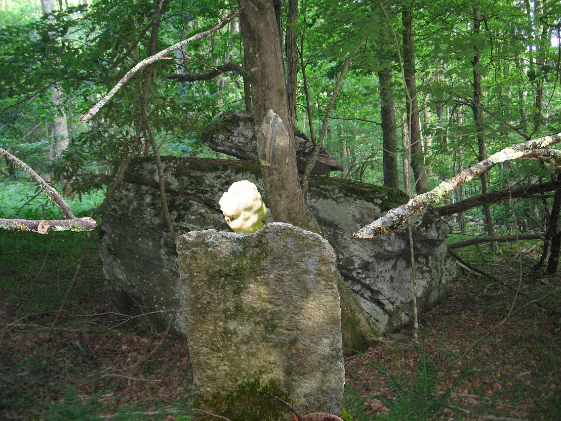Sticks float ghostly around the composite rocks. They seem to glow. And then we have the “head”? Head stone’s head. It’s not really a head but a picture of a fungus from a 4 Sticks photograph.