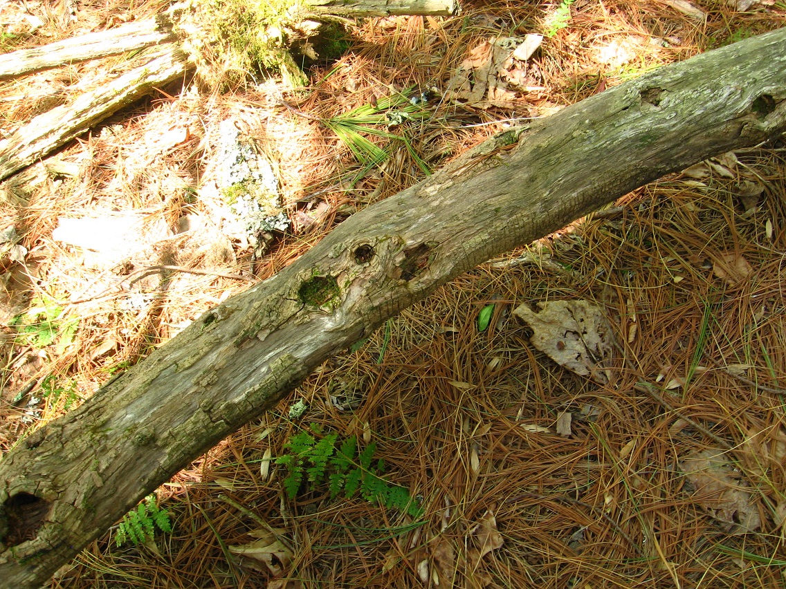 So this is 3rd Stick (foreground) and 4th Stick (background), a contrast in styles. 4th Stick is very straight and quite thick, or at least much thicker than the remaining 3 of its stick/log family. 3rd Stick is much less thick and considerably more curvy in nature, although overall still forming a pretty straight line. The bark texture is also rough and holey compared to the smooth 4th.