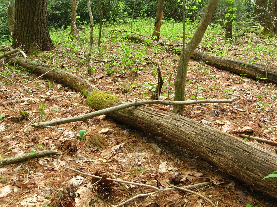 Another peculiarity: a perfectly balanced stick on a log was found just east of First Tree.