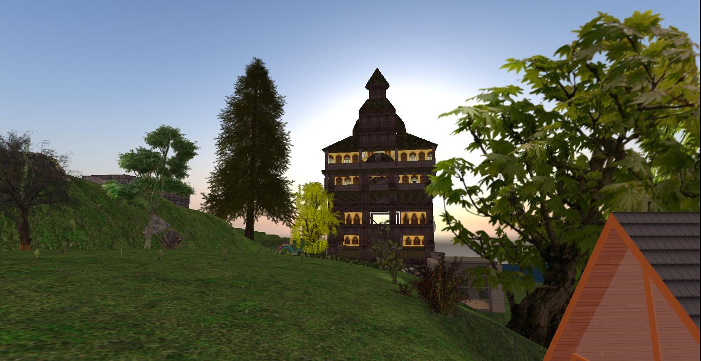 It seemed fate to purchase the larger of the 2 properties, since at the time it was the cheapest mainland parcel over 4096 square meters for sale in all of Second Life. Had to get it, you see, since I was already primed for a buy somewhere. Then also last night I began working on the landscaping. My thoughts are to position the Fal Mouth Moon Gallery at the west end of the long parcel, balanced by the Home o’ Fibs at the very east end. In-between would be a lengthy corridor of pure nature, basically, add in some border structures.