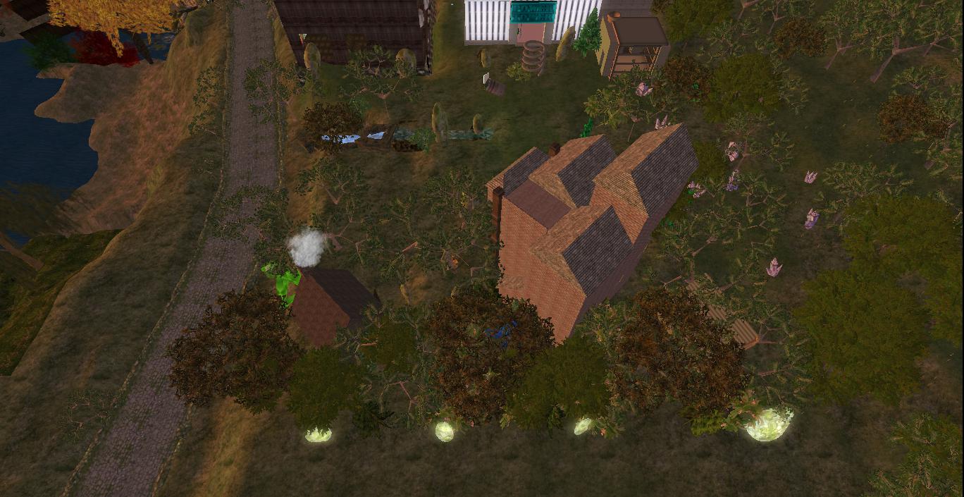 The NNW-SSE Diagonal, like the NNE-SSW Diagonal just discussed, contains 4 rocks instead of 5, with a gap this time coming between the Central Rock and the Bottom Rock. Again the gap is filled by a structure, in this case the Noru Museum building just rezzed on the property yesterday, I believe. However, it was also the spot of the Norris Building before that.