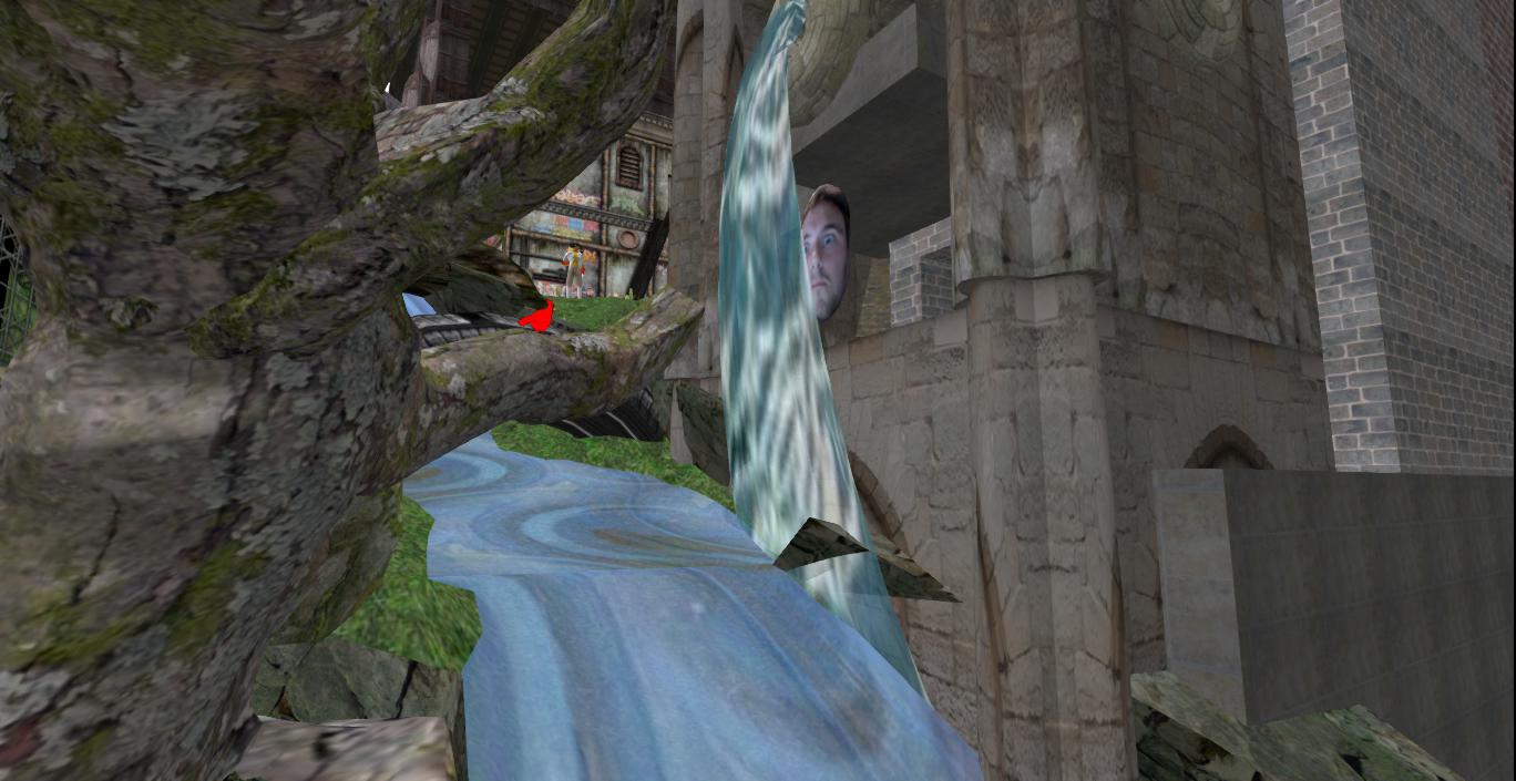 The cascades are perhaps called Tired Falls because of this large tire, present in duplicates of it on my properties probably dating back to 2009. This is an older way to cross Central Stream, before the insertion of Lo Bridge and Hi Bridge upstream. One still has to use the tire, basically, to access the Kidd Tower, which logically becomes an older structure of town. The stairs led one to Baker Bloch’s Home Orange and points west. If Collagesity was built upon an older settlement called Tired Falls, then this is its epicenter. It is here that Shadow Man came up from the plains and established what the related documents called the “Head of Stream.” Is this the same or related to Head of Perch? Is the Shadow Man the same as this Perch fellow? We’ll just have to play wait and see for now. He came, “from the North as the redbird flies.”