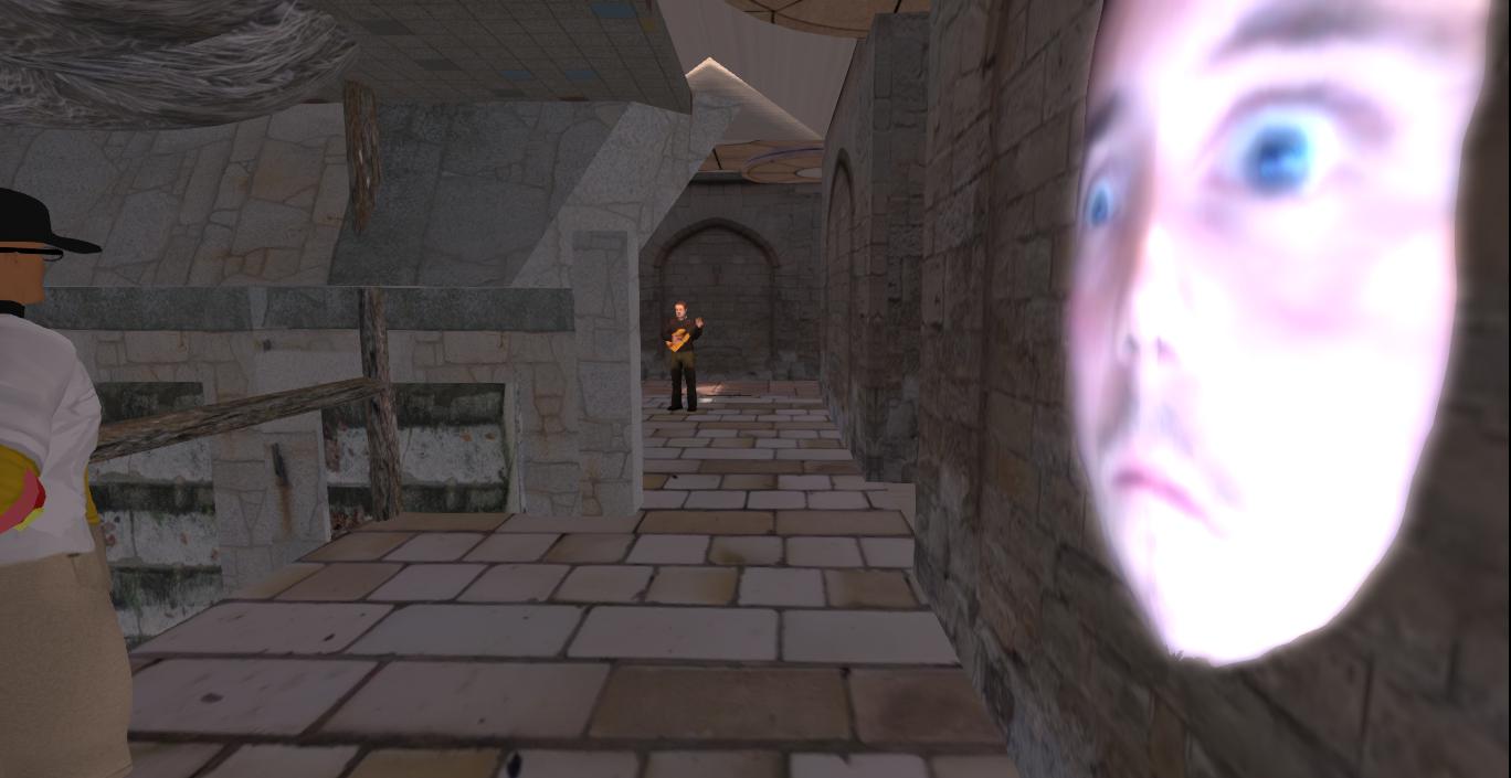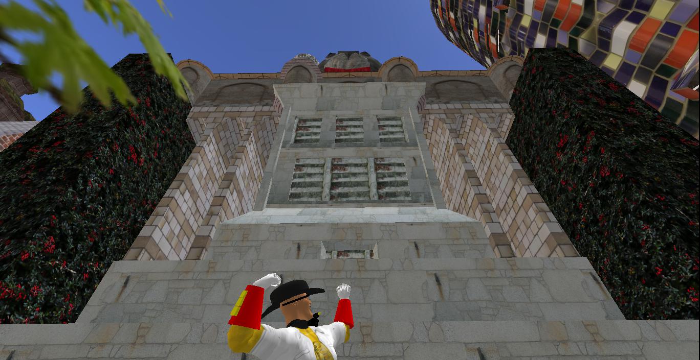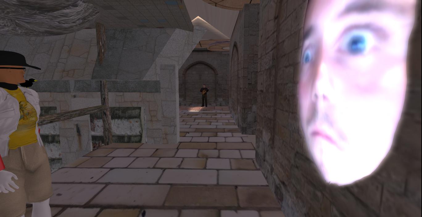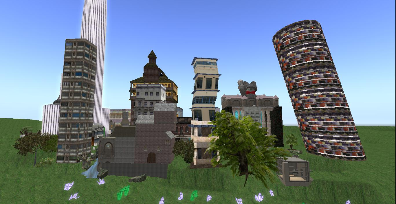 As you can see from the above photo there are some new structures in Collagesity, mainly on its eastern side. The nature park I envisioned there might not come about. 😦 On the easternmost part of my property is now situated the Marble Tower (far right above), which made its first appearance in Rubi’s VWX Town this past winter. It had no real function there except to serve as town eyecandy. I’m hoping to change that for this go around, and another collage gallery of some kind is a good bet for a functional fit. The cat statue topped Confluence Place next to it is another direct carryover from VWX Town, but I’ll have to work on the building in my skybox — can’t remember exactly how it was put together there. As I recall, it is a mashup of 2, maybe 3 Moard Ling structures. Now perhaps The Bakers can find out what happened in those far corridors, a 237 type mystery. Twin Peaks symbolism has already cropped up in connection with several Collagesity images/locations. Perhaps this represents another tie-in.