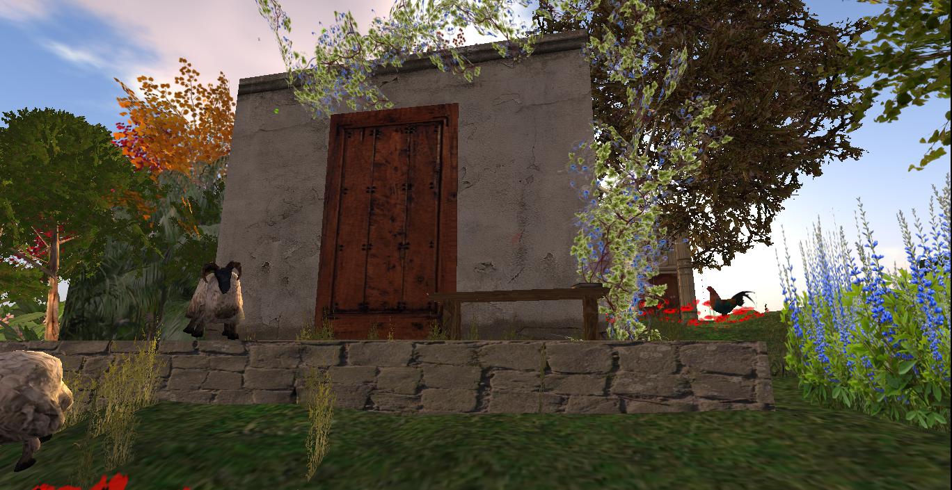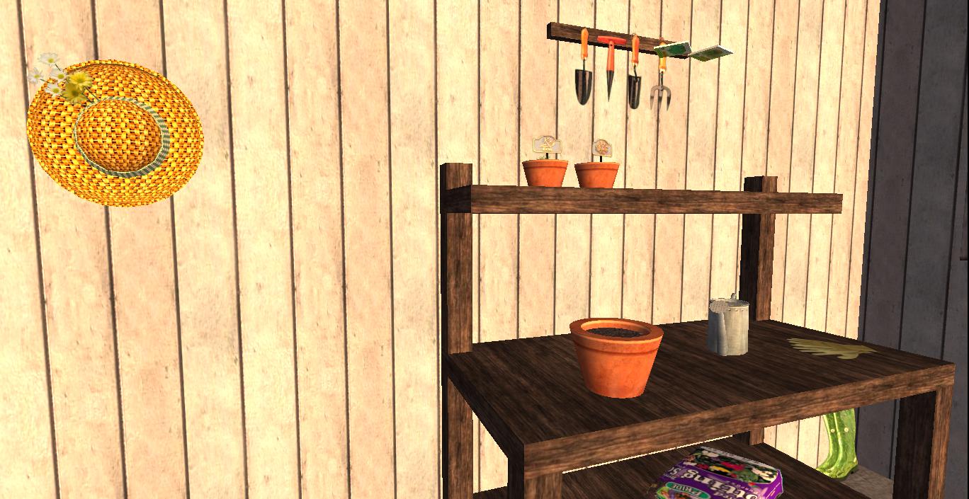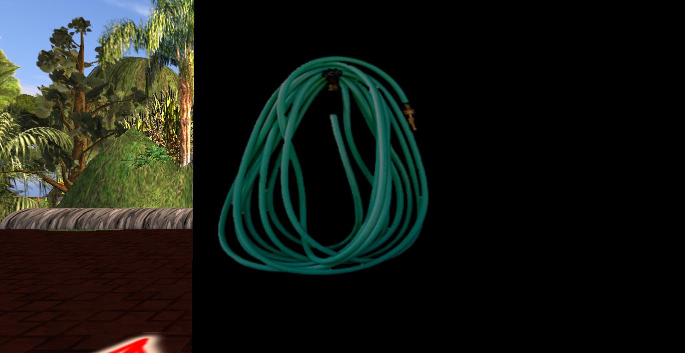 Very cool: on this parcel I also found a garden hose created by my old SL friend Cocoanut Koala, who I knew from both early Azure Island days and then from mainland experiences in Rubi a bit as well. She created, or perhaps still creates, very beautifully detailed work. She had a whole virtual village in Rosieri caddycorner to Rubi during my stay in the latter, filled to the brim with her artistry. I own several pieces by her, including a Ravenwood Cottage and a small shed.