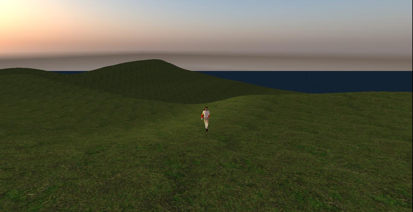 Baker heads south through the western part of Noru from his town. As he passes into the Mujigae sim, he turns and shoots this picture of a sign at the sim crossing. It was a familiar one, since he use to own a bunch of Noru land directly behind it in 2010: the now legendary (to him) Norum Woods, with the Blue Feather Gallery intially featured as a skybox from April to July of that year before moving groundside in August. And even though he abandoned the land in September, I believe, the forest remained for a number of months to come. You can visit Collagesity’s Noru Museum for more pictures of the forest and attached Blue Feather Gallery (and more!).