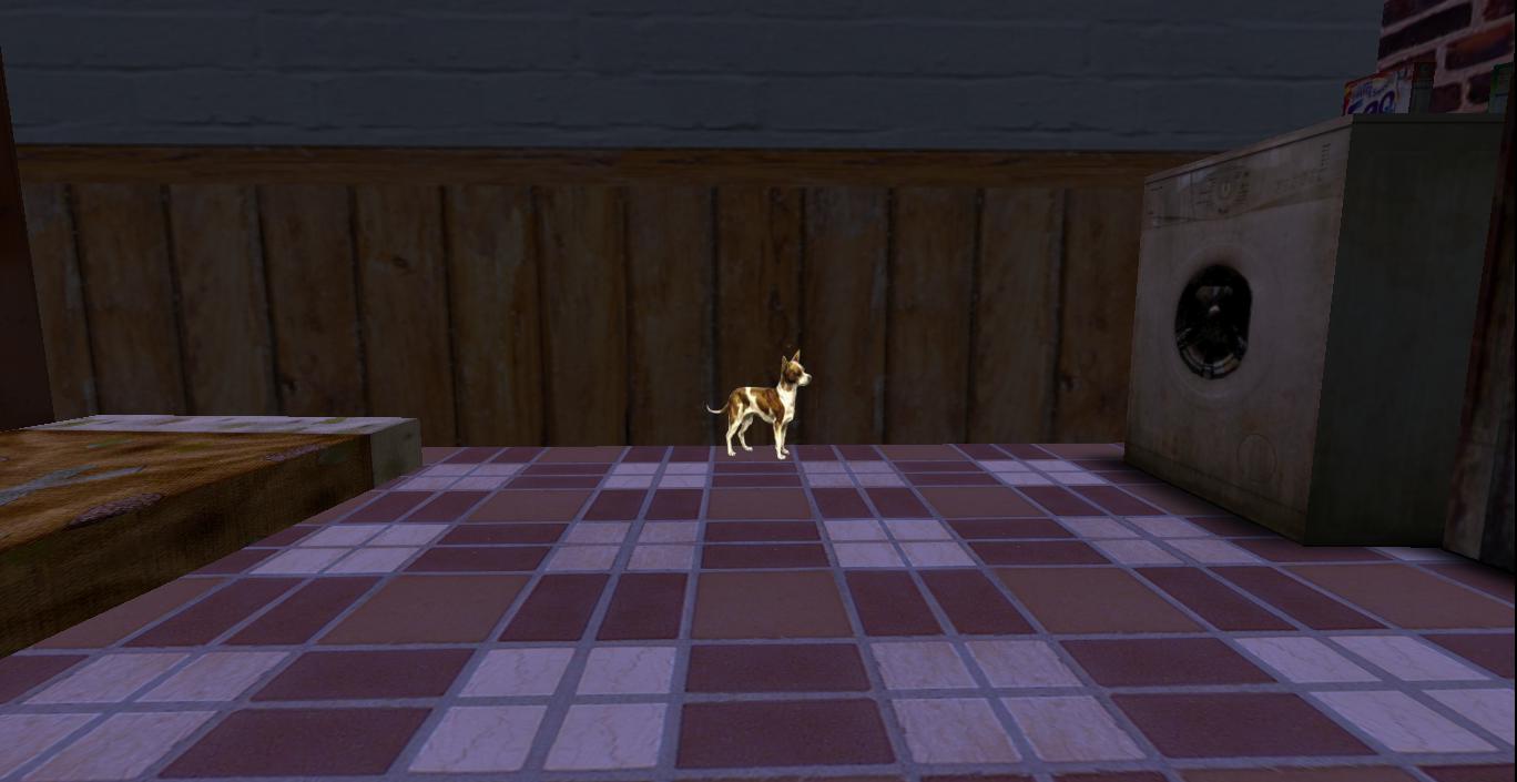 … because Lord Vice Mayor Starbuccaneer Resident happened to be walking past the front of Stairs Gallery at the time, on her way to see friends Gorilla, Chimpanzee, Hippo, and recently resurrected Ellie the Elephant at the Confluence Place. When she was directly beneath Spider perched on the BOB balcony, the dog jumped onto her head, knocking her over.