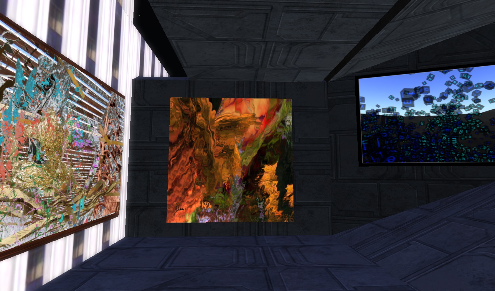 Purchasing additional land may not be purdent for August to expand Collagesity now, so what I might have to do next to free up some prim space is to gut the Toxic Art Gallery. A shame — but I have so many collages now in both the Power Tower and Fal Mouth Moon. I can rez the Toxic Art Gallery on my Philudoria property, perhaps. Another option is to use Philudoria as a sandbox for larger projects. The Art 10×10 within Toxic Art has now been completed for over 5 years. I could use it for another collage gallery, perhaps eliminating half of the floors. Gutting the TAG in this fashion, even if inserting another gallery, would probably save me 100 prims right there. TAG is one of those structures that is *not* downsizeable by changing physics shape type under edit/features from prim to convex hull. Like a lot of objects, this *increases* the number of prims, in some cases quite dramatically.