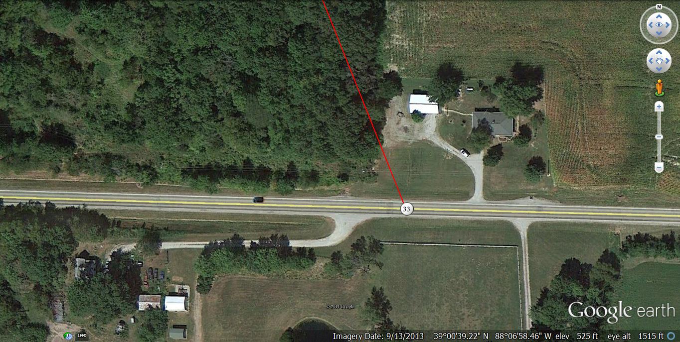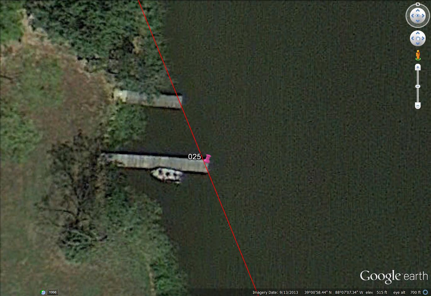 Prime line: 1.32 miles long. The line traverses Sam Parr Lake near its longest stretch of water, at an angle of approx. 338 degrees. The line grazes a quite suspicious number of peninsulas along the way, as I’ve marked on the map. Position 132 is at the upper end of the lake, 1.32 miles away from point 000. This can be read as 4 x 33 for our purposes. Position 33 is 0.33 miles up from position 000 on this line, or 1/4th the way up its length. This happens to mark the only boat found floating freely in the lake in this GoogleEarth map rendering from 2013, that is, away from any dock. Position 25 (0.25 miles from 000) just below marks the end of a pier where another, very similar looking boat is docked. The boat, just to the west of the 33 Line, is also 0.25 miles from position 000. It is the only boat besides the one at 033 not docked at the park’s marina, as far as I can tell. If the end of the SPSP 33 Line is determined to be at position 125 instead of 132, then point 025 is 1/5th the way up this slightly shorted version.