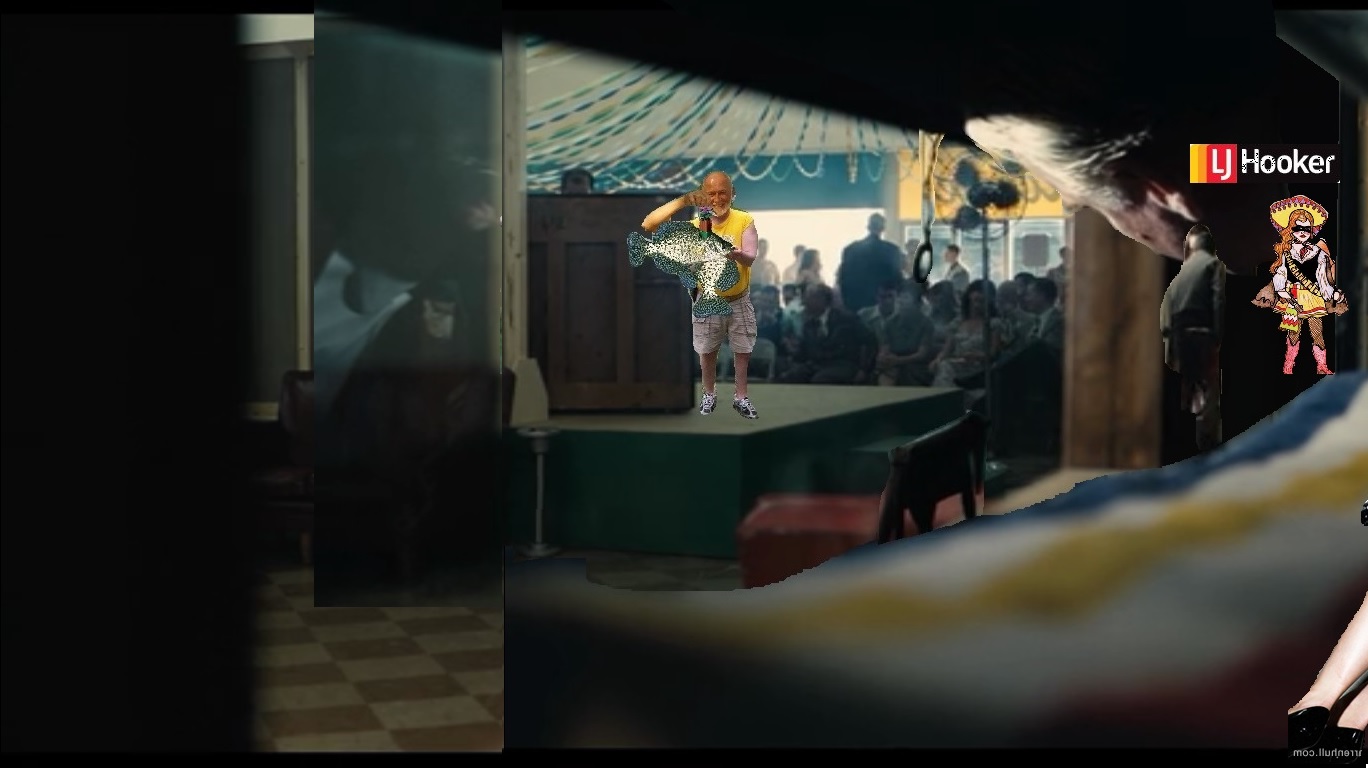 The piano is merely turned around a bit to reveal that it’s not a piano but this… contraption. The guy in the door is definitely the same as the man holding the perches and contraption from samparr08. They stand in the same place on stage. The fish (perch?) are caught in Sam Parr Reservoir. They must be the same as the 2 boats at 1/4th and 1/5th point along the 33 Line there. The 33 Boat (Point) defines the Line.