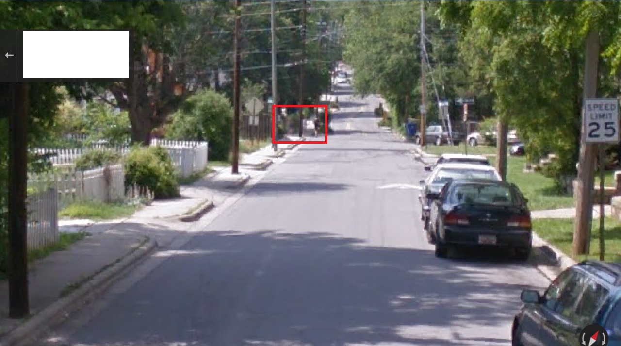 The girl appears to see or hear the Google Earth car approaching, and moves out of the way. We get a good look at her…