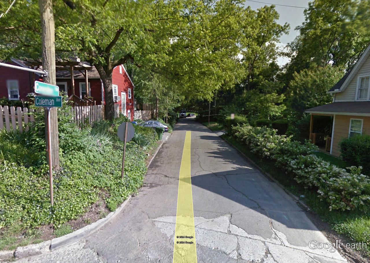 It was a cool and overcast day yesterday when I decided to head to Ashville to check out more recent Google Maps based oddities. Nothing earthshaking found, but I’m starting to fill in a larger picture. I continue to believe a lot of it, a lot of what the energy is channeled through, has to do with that stream I call Linden Creek running between Cherry and Lime streets.