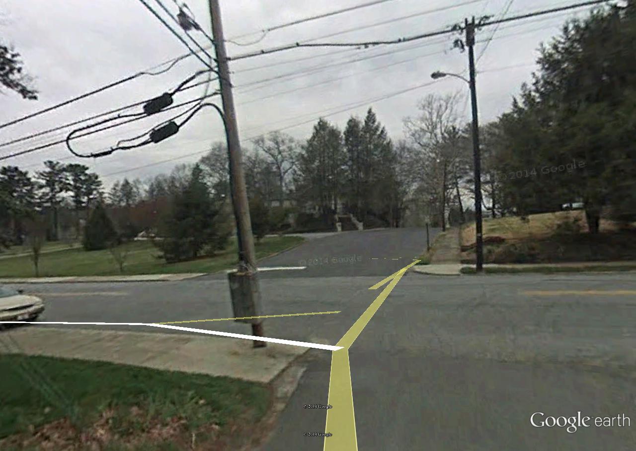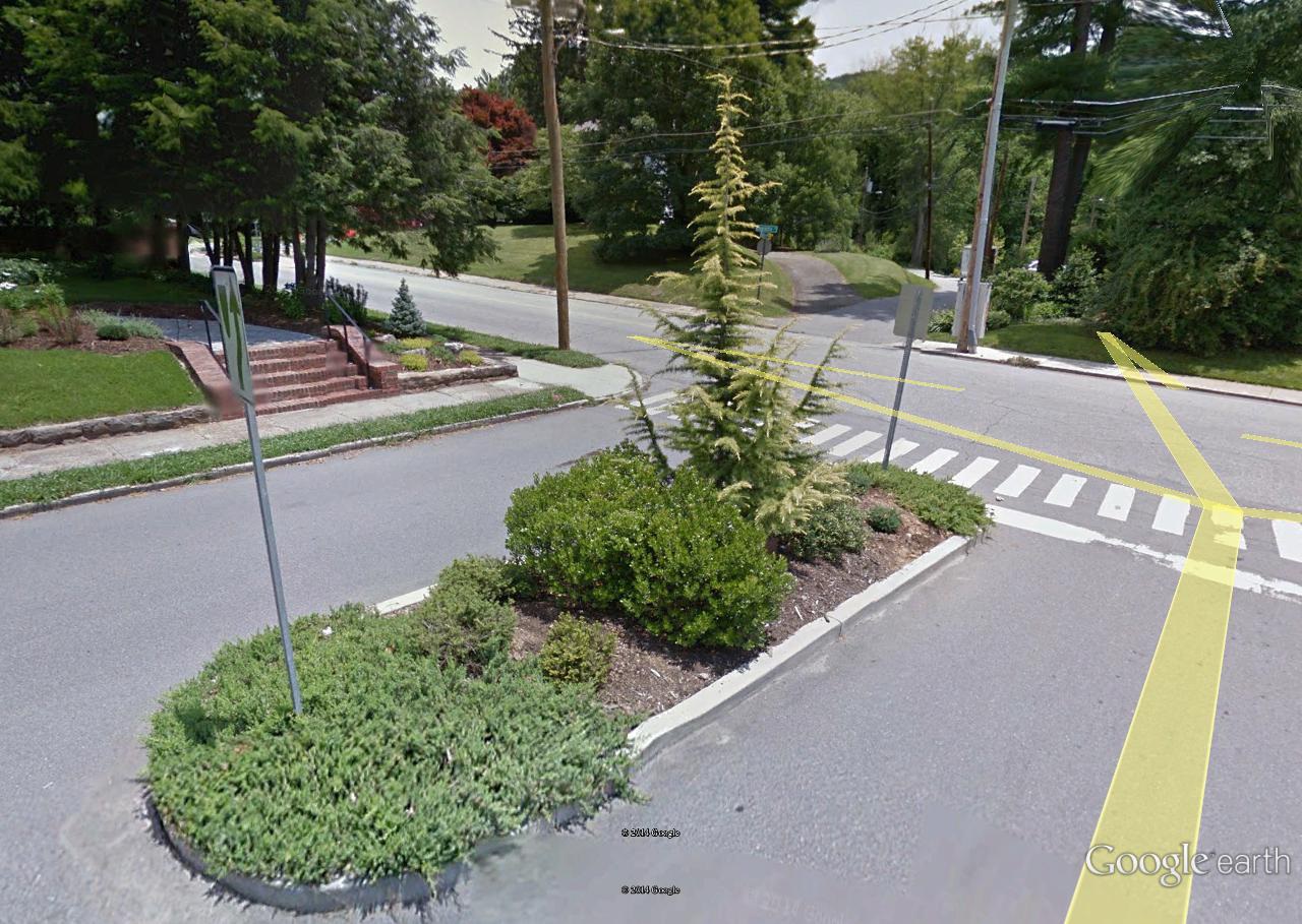 In visiting the intersection via Google Earth Street View, I was very surprised to find something more unusual going on. The conjunction of Banana Street and the side road we’ll call Cone was calm itself.
