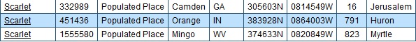 Orangeville points out Orange County, Indiana home of basketballhead legend Larry Bird. Scarlet in northwest corner of same county. Near Scarlet, WV is Bias, like Lenny Bias. Larry Bird and Lenny Bias: twins. Orange basketballhead twins, highlighted in scarlet. Third Scarlet (GA) near Seals(ton). This is, once again, the Scarlet Triangle.