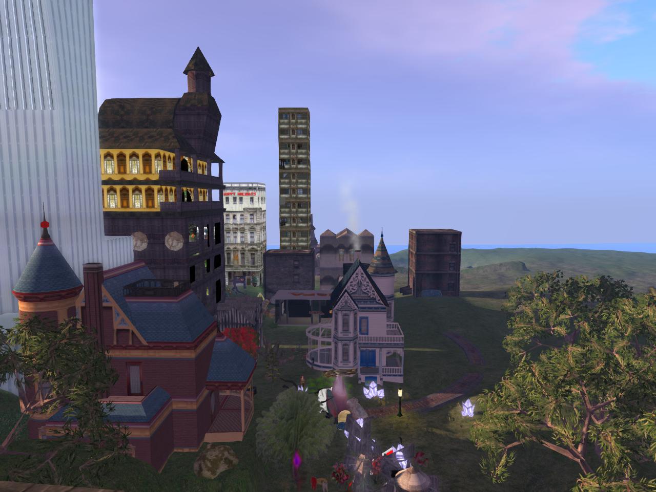 Here’s an exciting prospect as well. Even when I fit out the remaining buildings I might have upwards of 650 prims to still play around with in a skybox situation. I didn’t resurrect the Noru Museum, and I think that saved about 150 prims right there. On the other hand, the two Victorian houses I currently have in Collagesity didn’t appear in Noru. A happy conundrum, though (!)