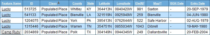 So 1 more way Camp Ruby pops up in a list of pop places (through variant names):