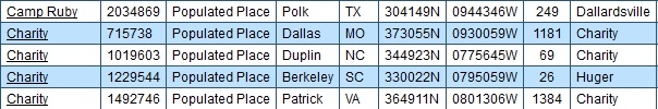 Mostly familiar counties there: Duplin, Dallas, Patrick.