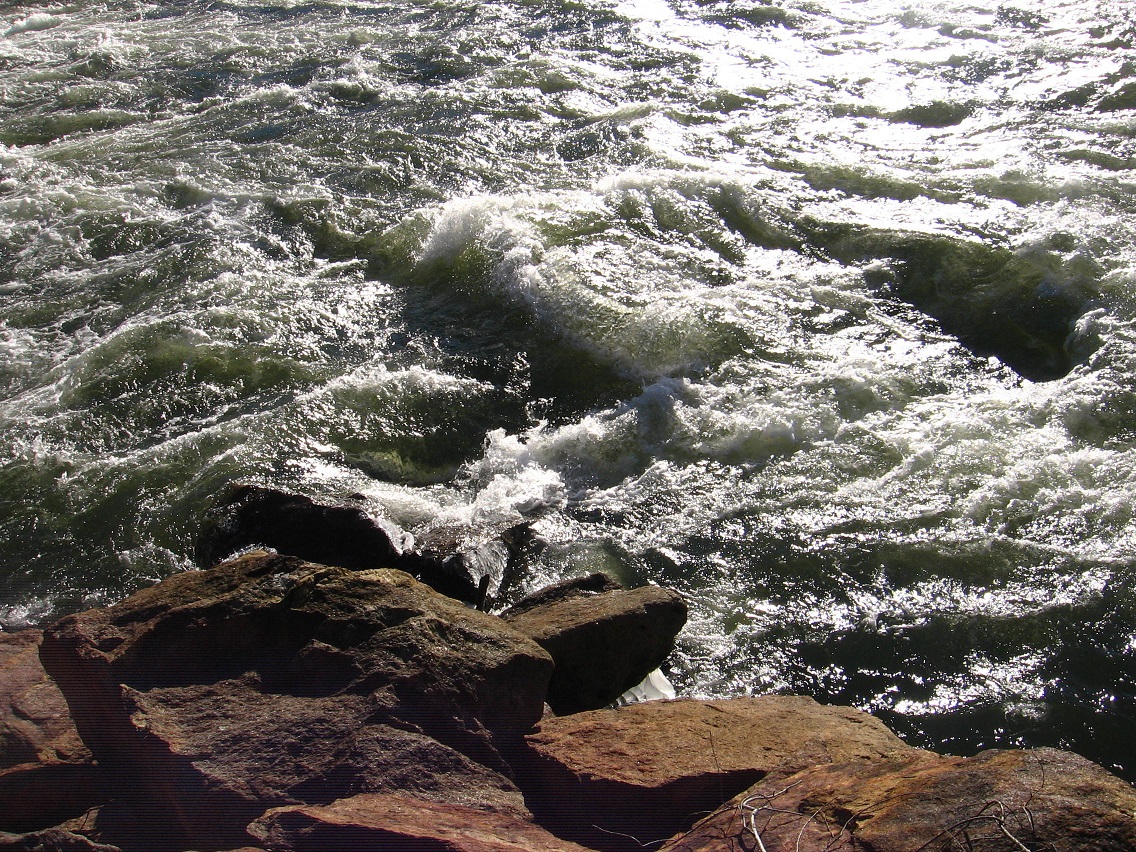 So to the pictures — below we have the amazing Center River (Centeriver) swiftly flowing north past rocky islets, with the bald plateau of the old A-ville landfill rising above the treeline in the background. We are looking into the heart of Alexfin.