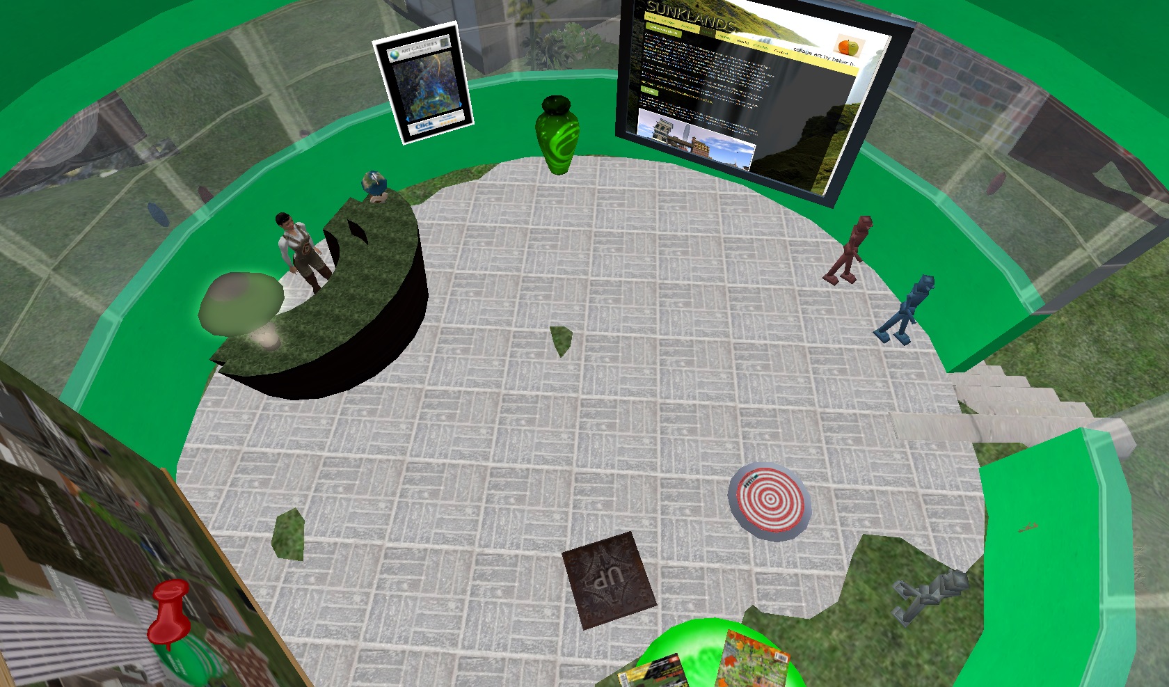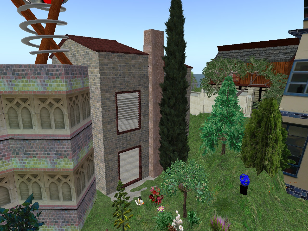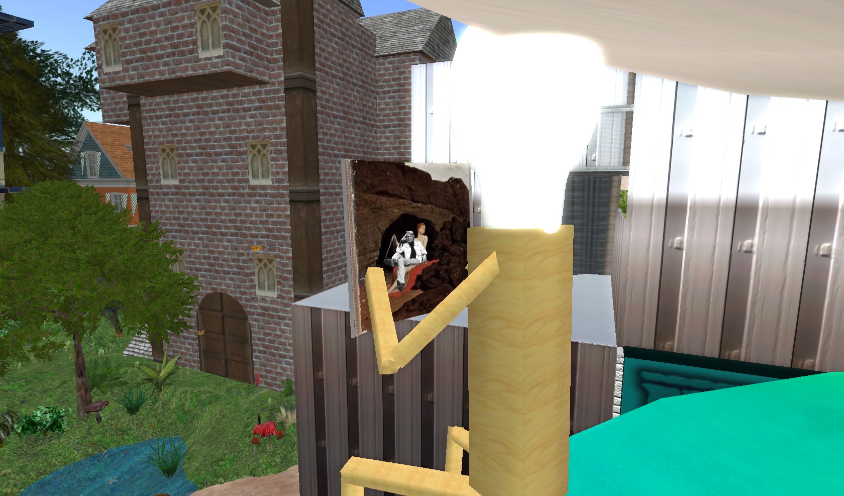 I have 333 prims left to play around with in Collagesity. The outlying galleries and buildings, as I’ll call them, remain to be developed. Some do not even have a name yet. They lie as far outside the umbrella as possible while still within[ Collagesity]. Even the TILE Chapel is incomplete, since Carrcassonnee remains without Eye. At least 2 Perches exist in the village presently, one in Town Diner (basically complete that one is), and the other in Collagesity Underground, directly beneath the Red Umbrella gallery. Can we combine Perch and Carrcassonnee again, like was done early on in Collagesity, Noru?