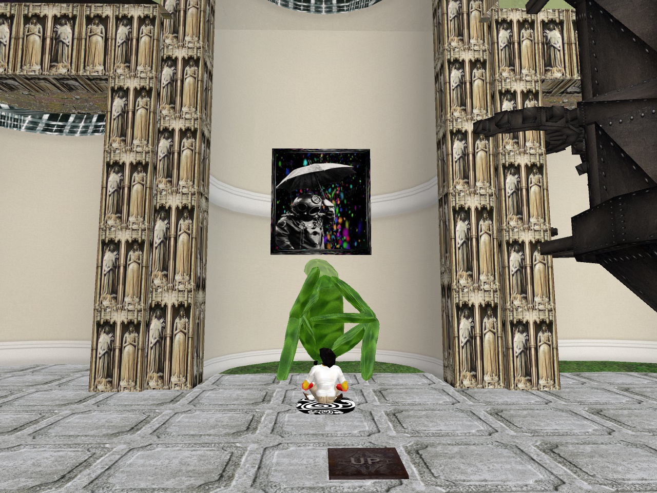 I decided to switch out the potential Rubi Museum Building with the Stair Gallery structure to reduce prims. I plan to reinsert the Kollage Kid exhibit within, as it has been in a number of my virtual villages now. And I’m back up to 333 available prims all of a sudden… well, 332.