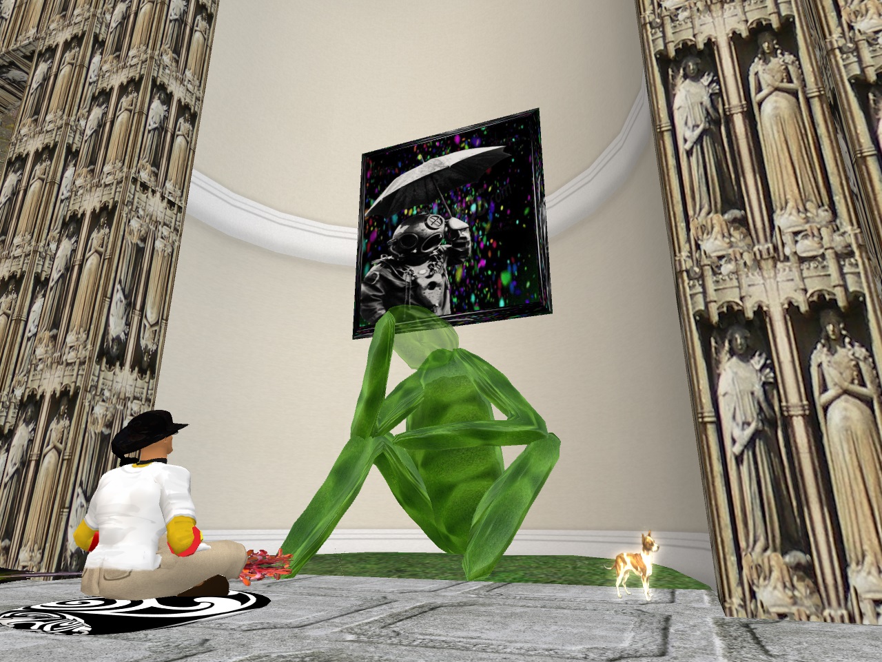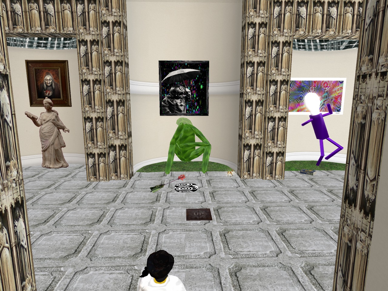 Well, I decided that the rocketship and the moon (Da Moon) had to go to save prims. The whole moon rocket package is an amazingly wonderful design by Aley (official name: “From the Earth to the Moon V2”), so much so that it’s hard to tamper with creatively, like I’m wont to do. And for what it gives, the prim count is quite low. But it’s still close to 100 when you add it all up, and I wanted to do something else with the Norris Temple/Building. What quickly evolved tonight is a concept called The Temple of Choice.
