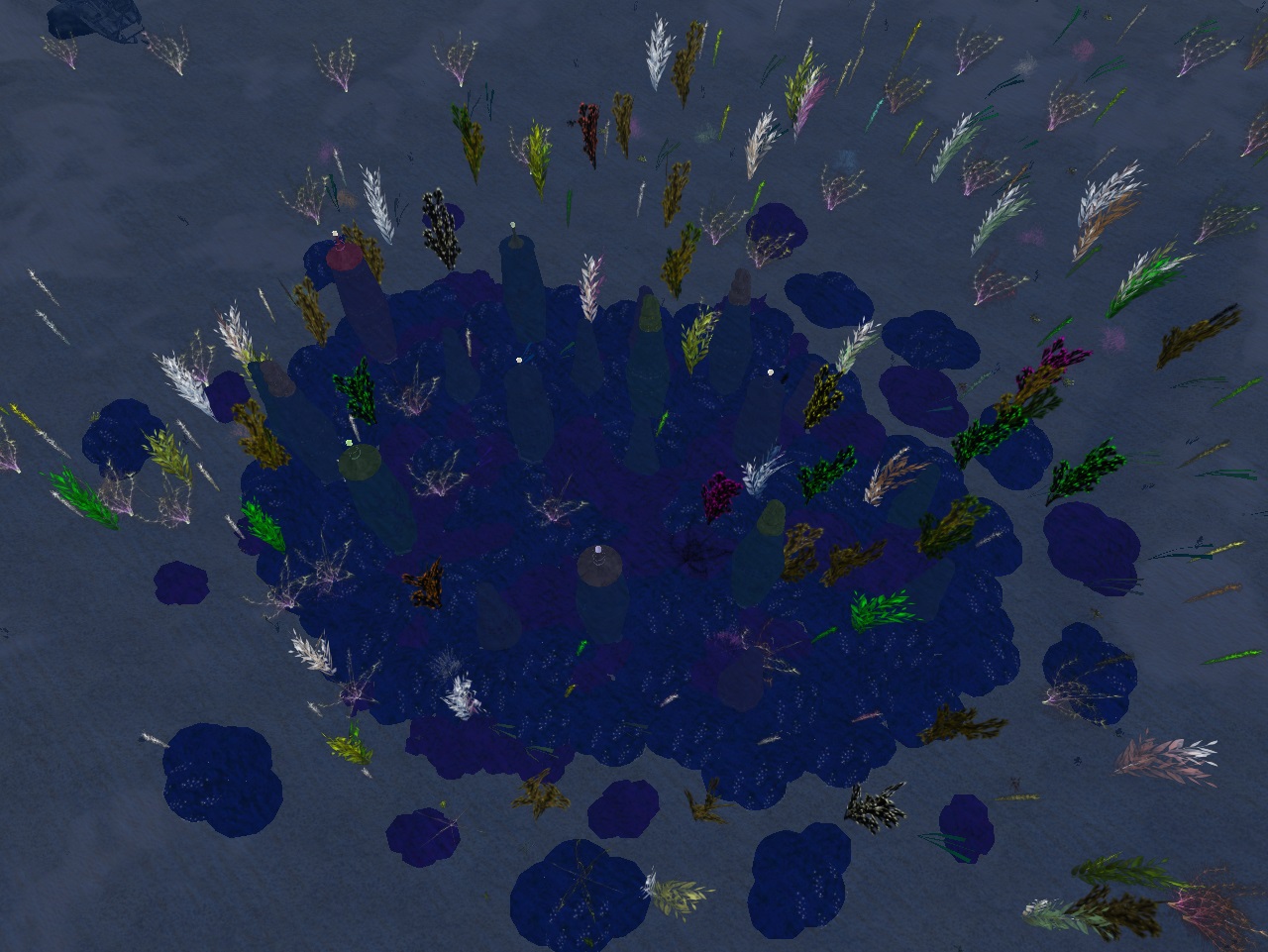 Looking back toward Mysten Underhill from beside the Church of the Silicon Soul located in neighboring sim Goremoor. We’ll also talk soon about a perceived separation of the sims Mysten and Goremoor, perhaps purposely enacted by Hax. If so, it seems that the sim name Siliconicus might also be involved. Perhaps even others in the general area (Fumb?).