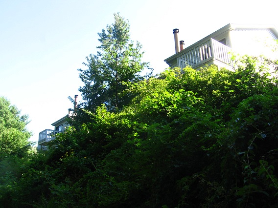 I plan to revisit this place very soon, perhaps using a more direct route from across the creek. I’ll attempt to make a map the next time. But for now, the below, overexposed pictures will have to serve. Certainly one of the more interesting aspects of this area is the higher cliff pictured below, topped with a number of rocks that are unfortunately dotted with poison oak plants. However, that’s about the only poison oak or ivy I saw in the immediate area. Kind of surprising. As I’ve stated before in this blog, such plants are not as common in the Blue Mountain environment as they are in, say, the lower Mythopolis of the piedmont region or even Middletown, another mountain berg but of lower elevation and more southern position. Chalk that advantage up to Blue Mountain over the others, then. And, parallel to this, give Blue Mtn. the advantage for having cooler summer temperatures, which certainly makes it a more pleasant place to live through much of July and August. But again that pendulumic downside: the harsher winters. Yeck!