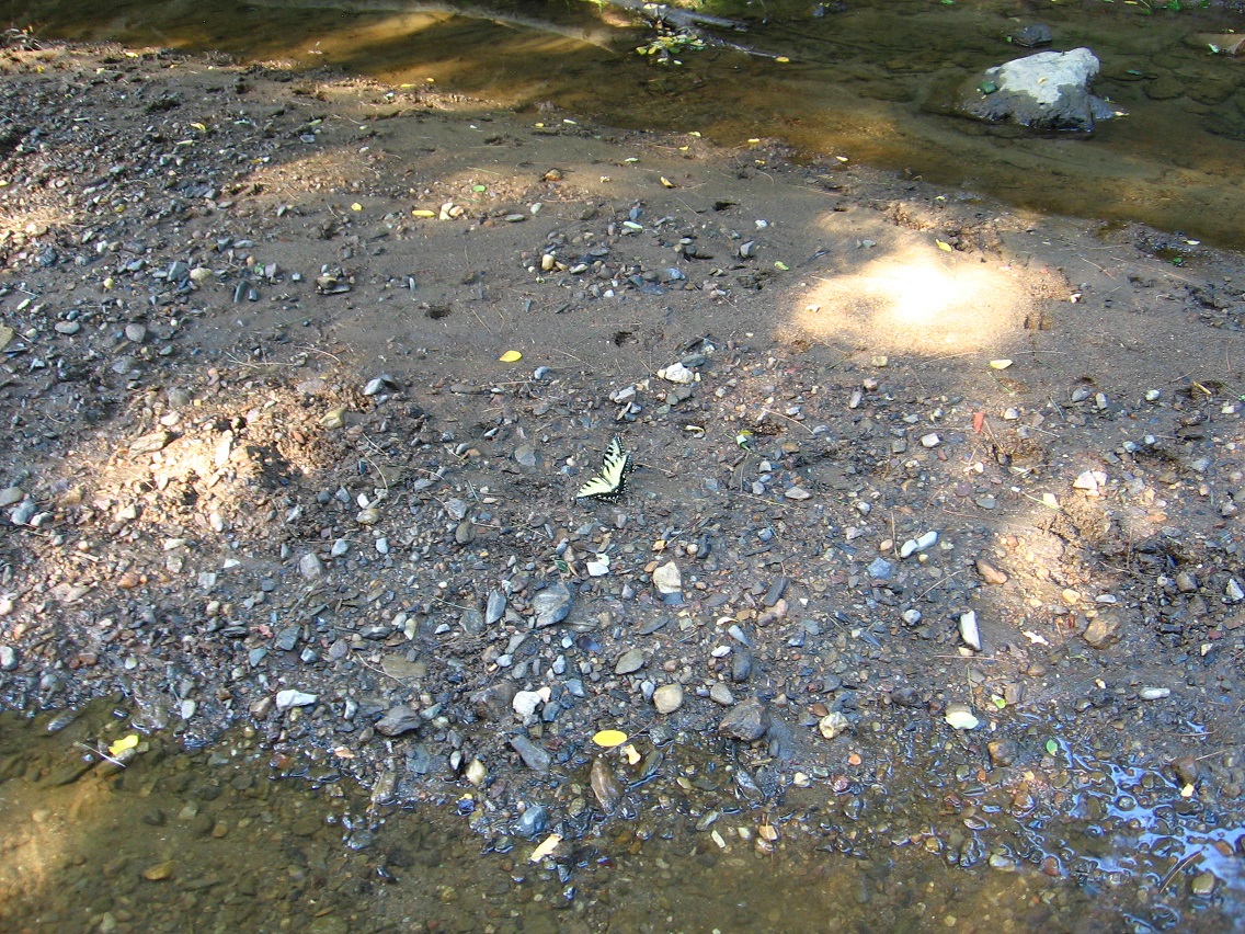 Monarch butterflies on a sandbar (well, mudbar) near the stream conjunction.
