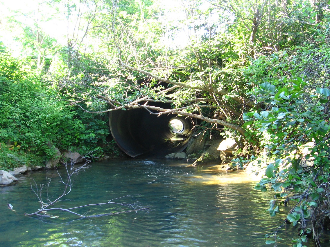 Beyond the row of apts. in continuing to head upstream, we come again to that important confluence first spoke about here. To the right is the mouth of Blue Mountain Creek. To the left is the continuation of Leola Creek upstream to the mall and beyond. But since they’re both of about equal volume, the name situation could have been reversed. Or at least Blue Mountain Creek could have instead become the namesake continuation of Leola Creek.